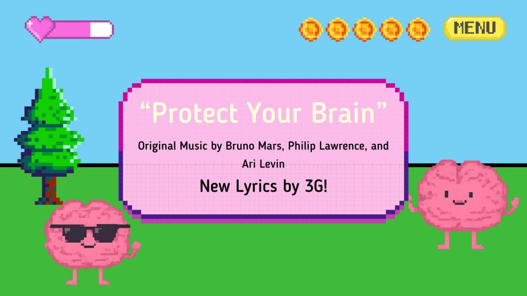 One of best parts of the assembly was 3G’s original song lyrics for “Protect Your Brain,” an earworm to teach others how to take care of this vital organ and understand how we learn.