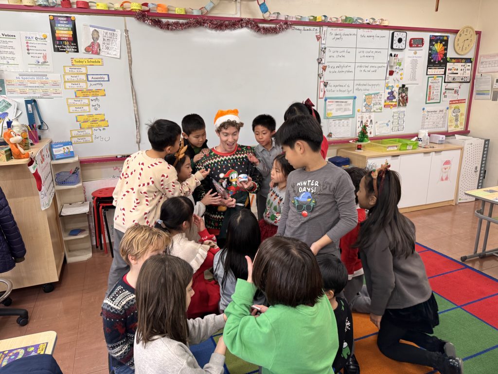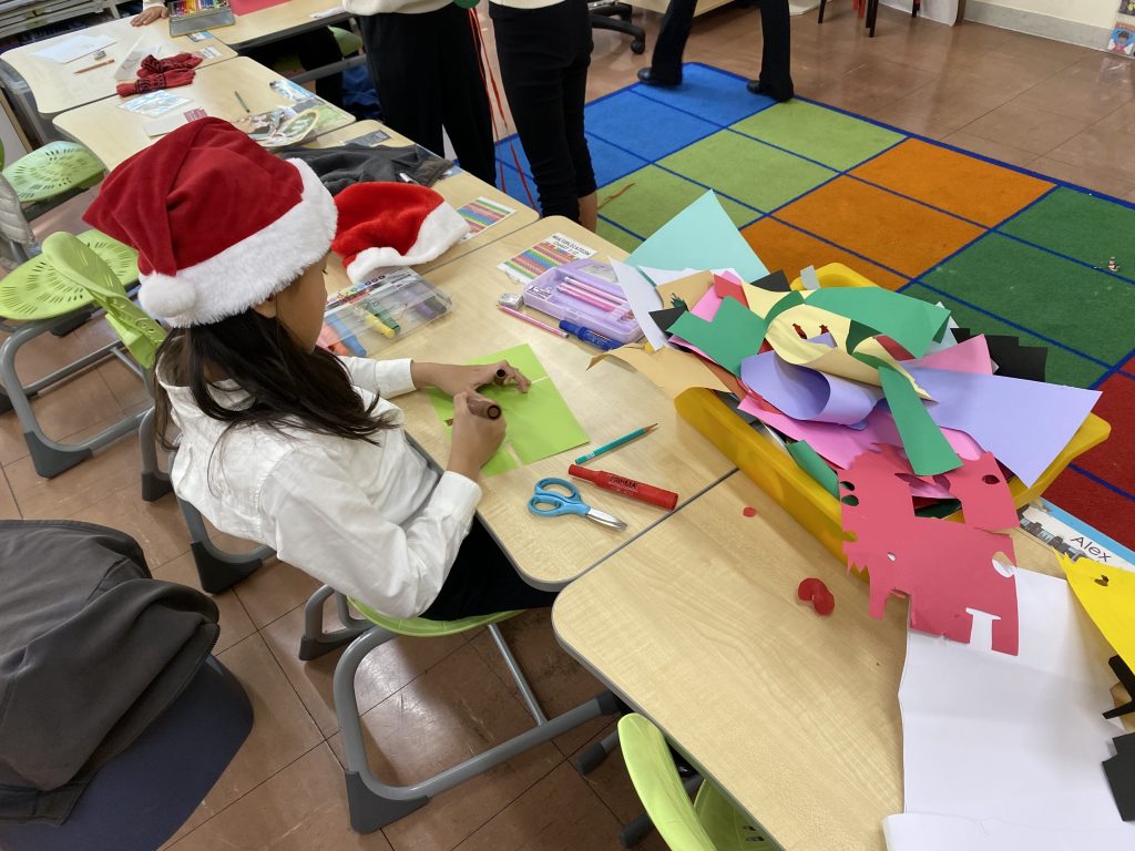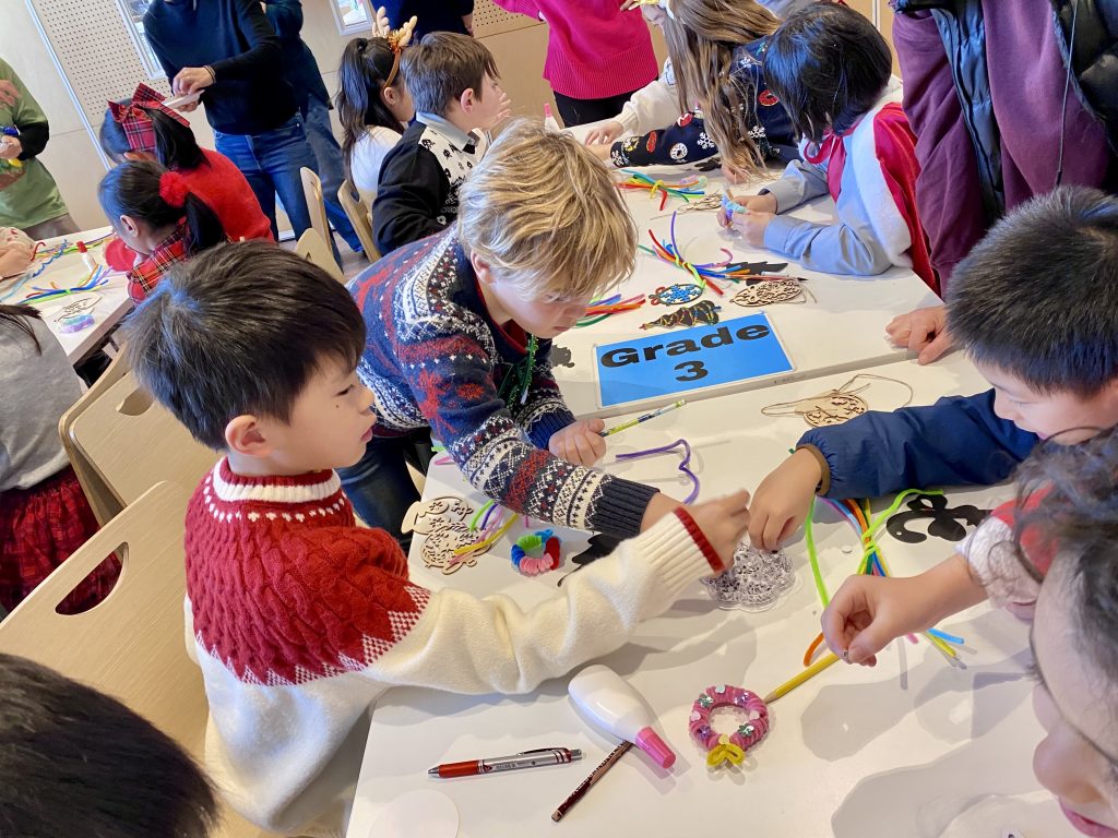 On the last day of school before the big break, we had a giant Christmas party for all 3rd graders. There were crafts, games, music, dancing, yoga, and lots of food! Many parent volunteers combined efforts to make it a truly fun and memorable event. Thank you, parents!!
