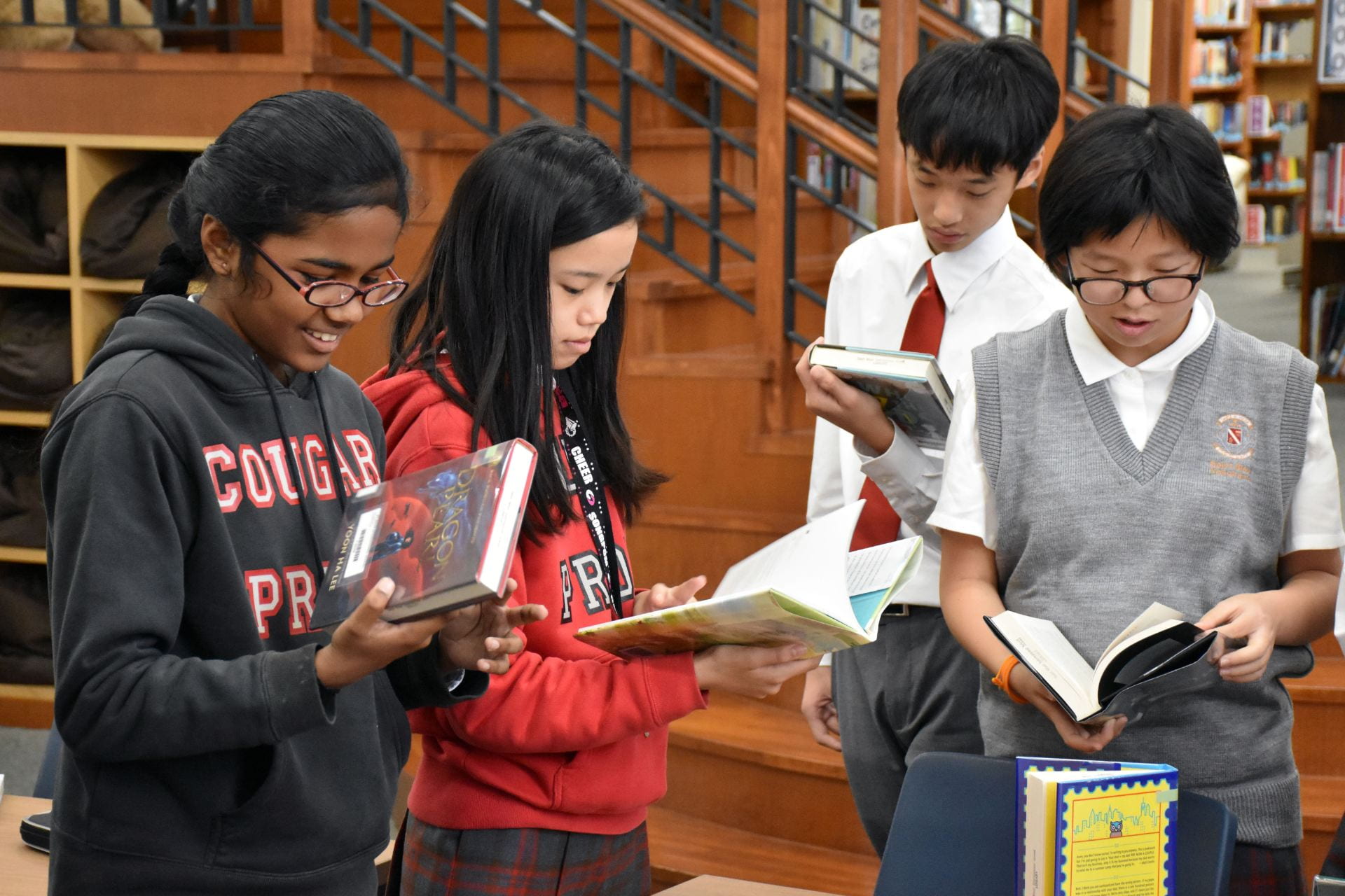 Middle School students were queuing outside the library on the first day of borrowing. There’s a lot of reading going on – the Middle School shelves are empty, and students are also reading on library Kindles.