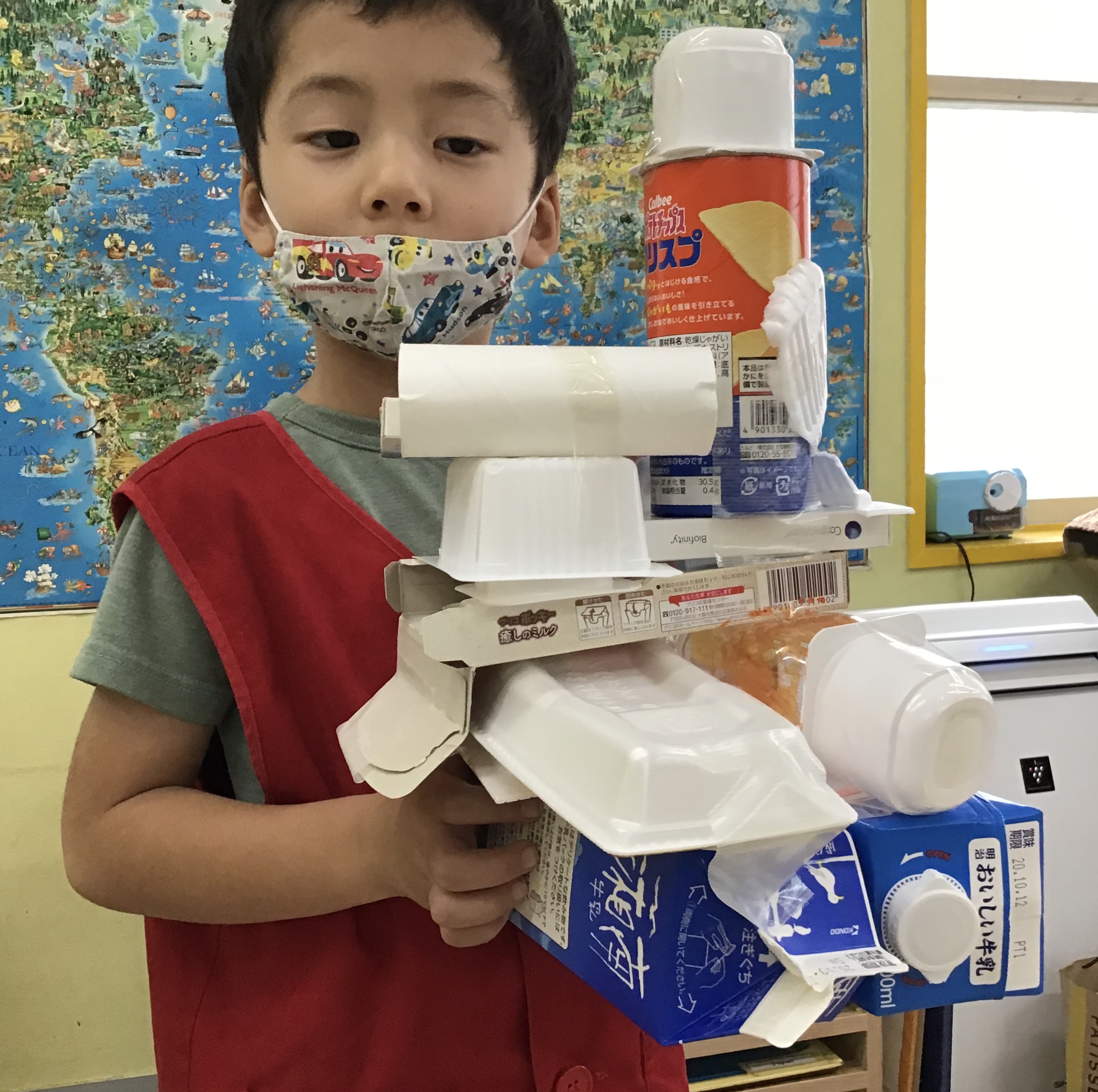 As part of Fun Day in October, the children each brought recycled items from home, e.g., boxes and pet bottles, to make something creative.