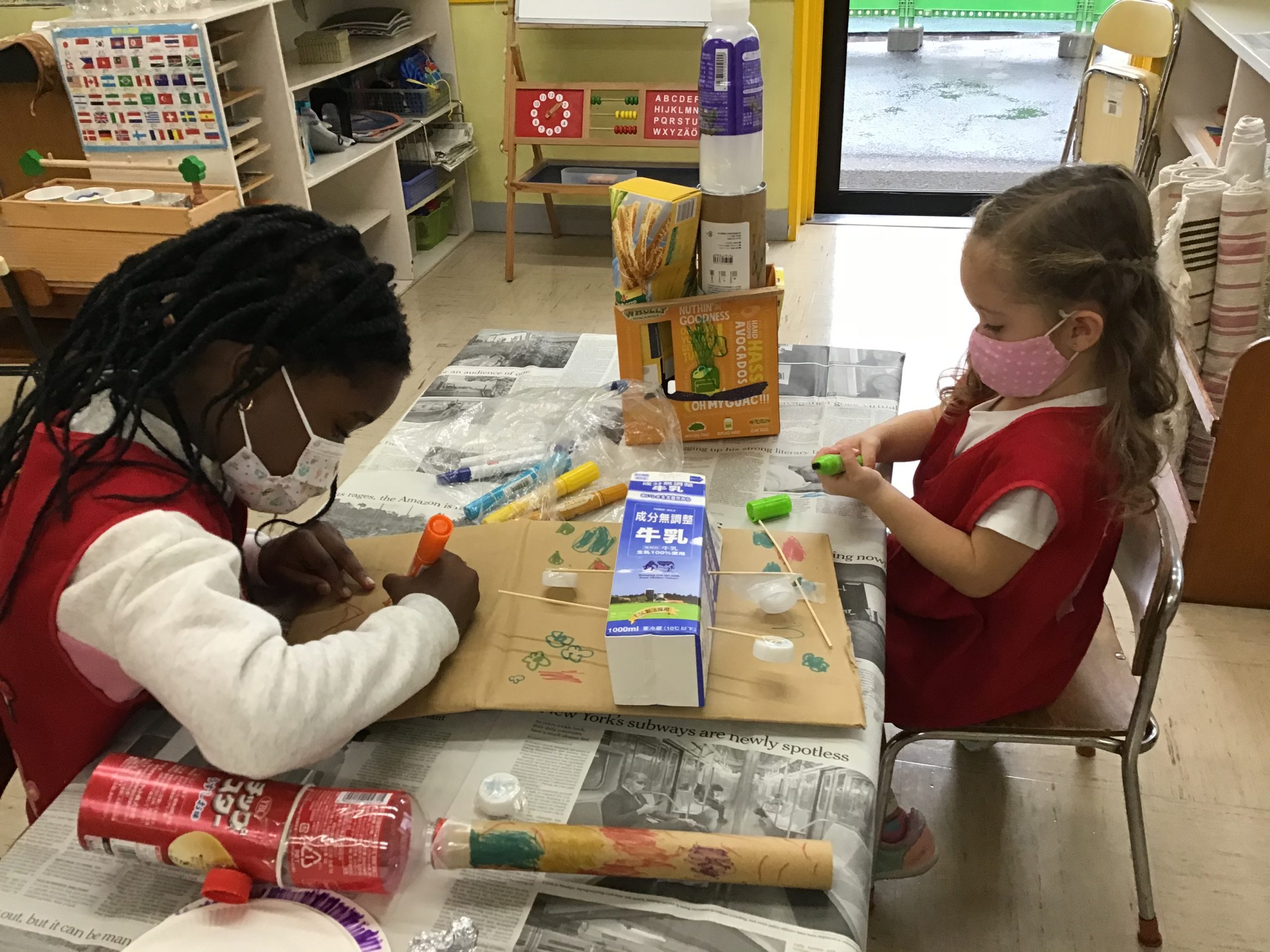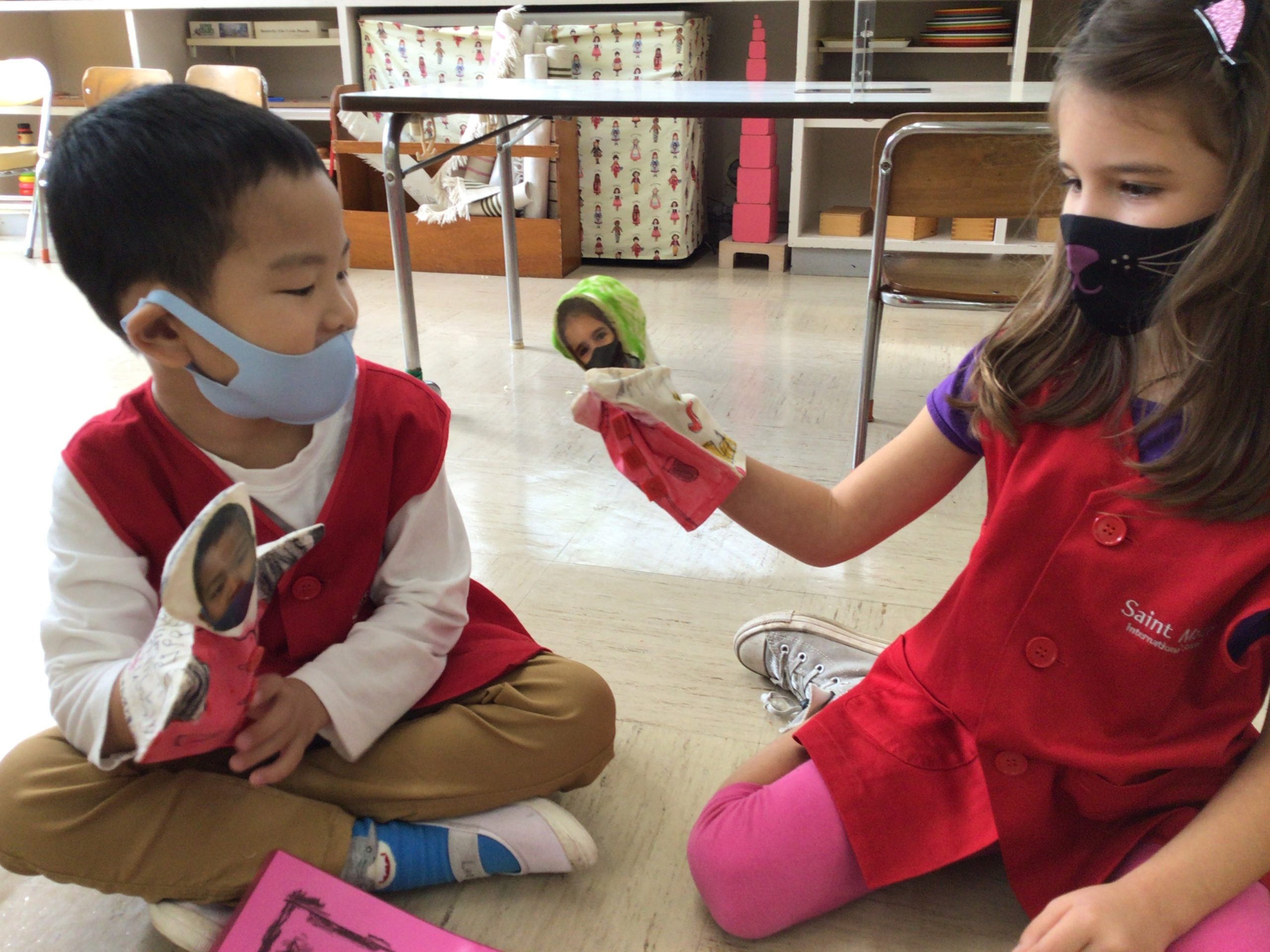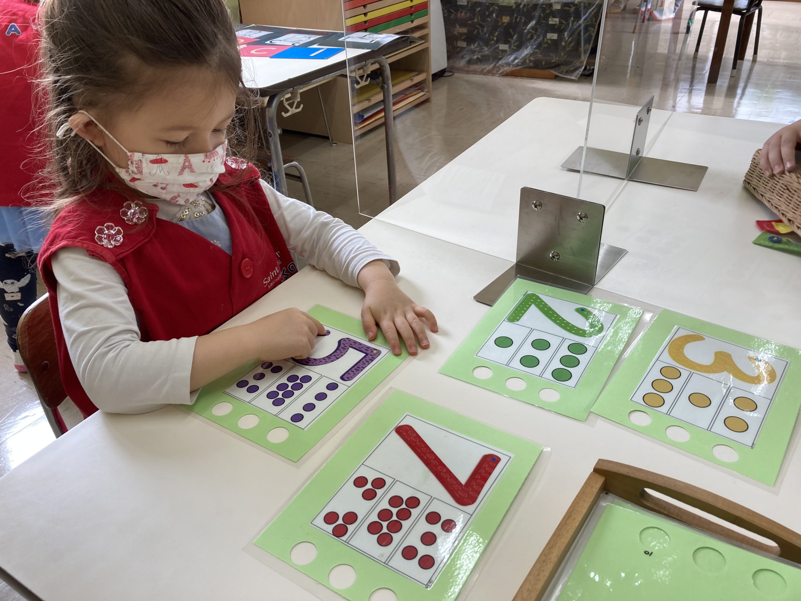 When the children were eating lunch, they knew that they had to eat in silence since they took off their masks. As a result, the children developed their own sign language to communicate with each other through the transparent hard-plastic table dividers. How clever and fun!