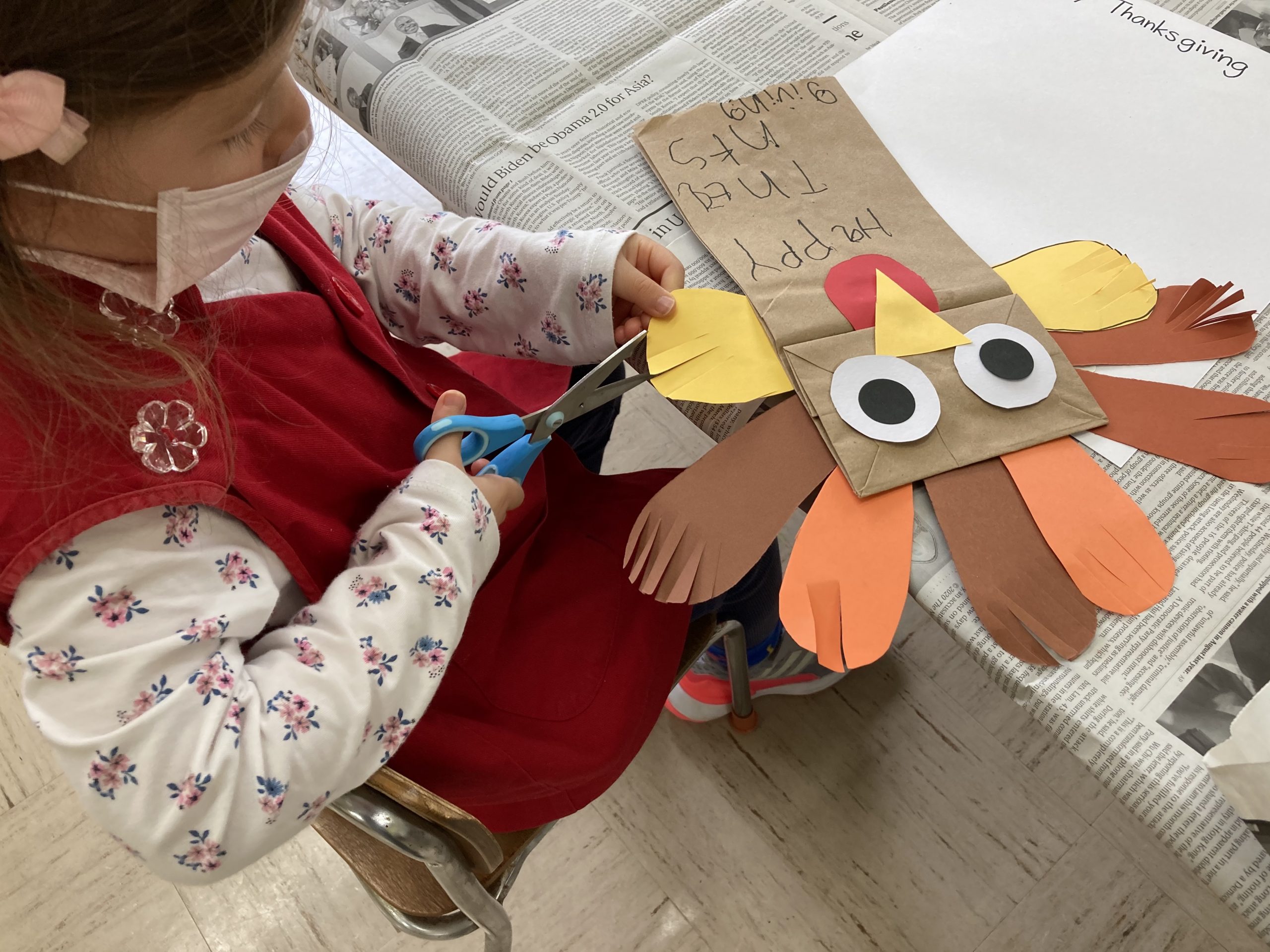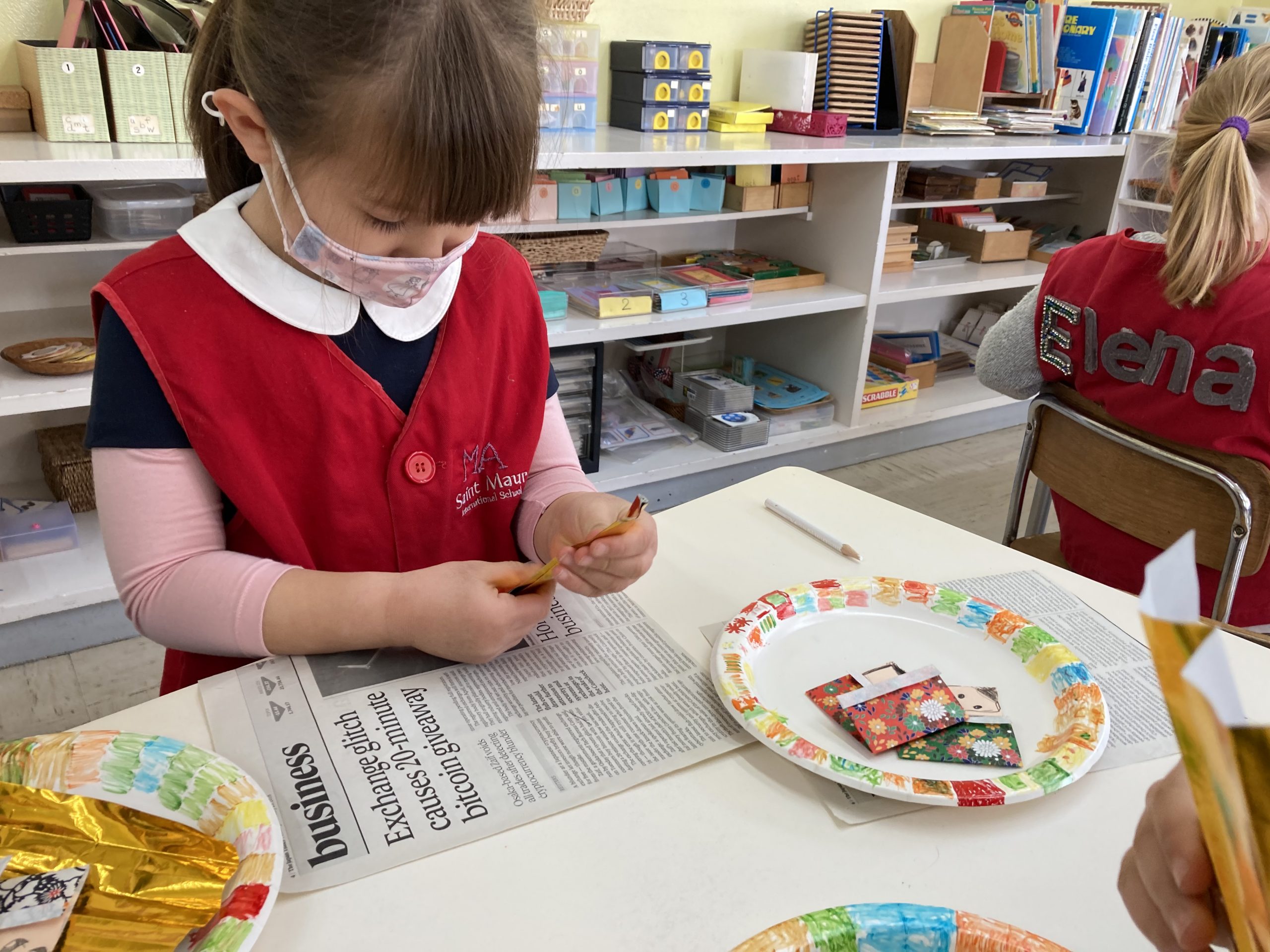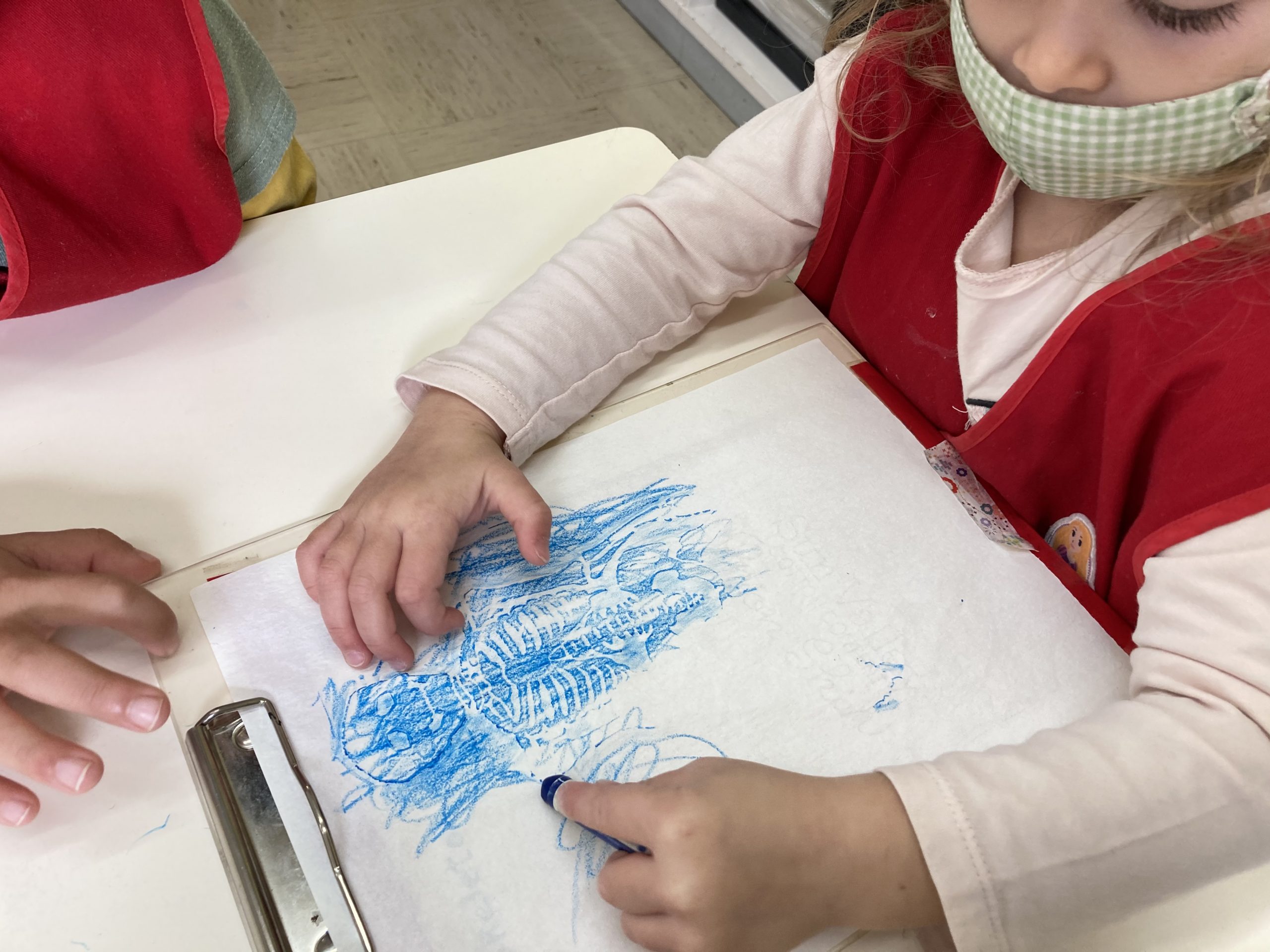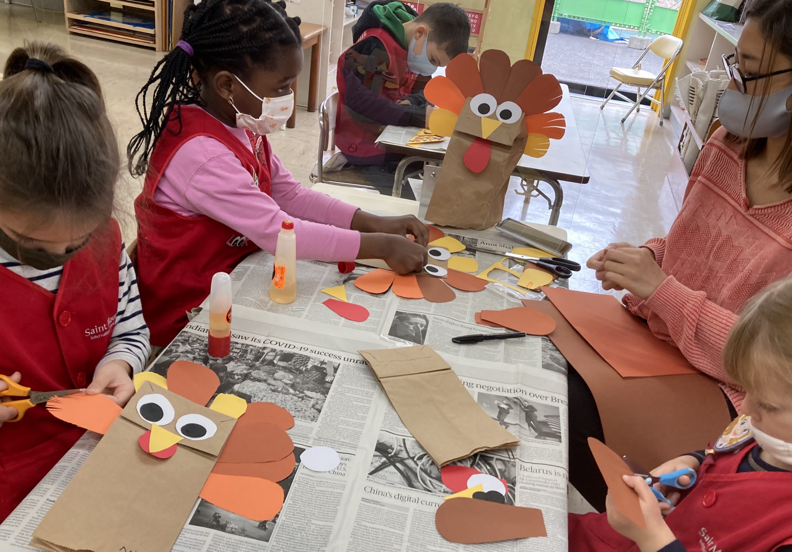 When the children were eating lunch, they knew that they had to eat in silence since they took off their masks. As a result, the children developed their own sign language to communicate with each other through the transparent hard-plastic table dividers. How clever and fun!