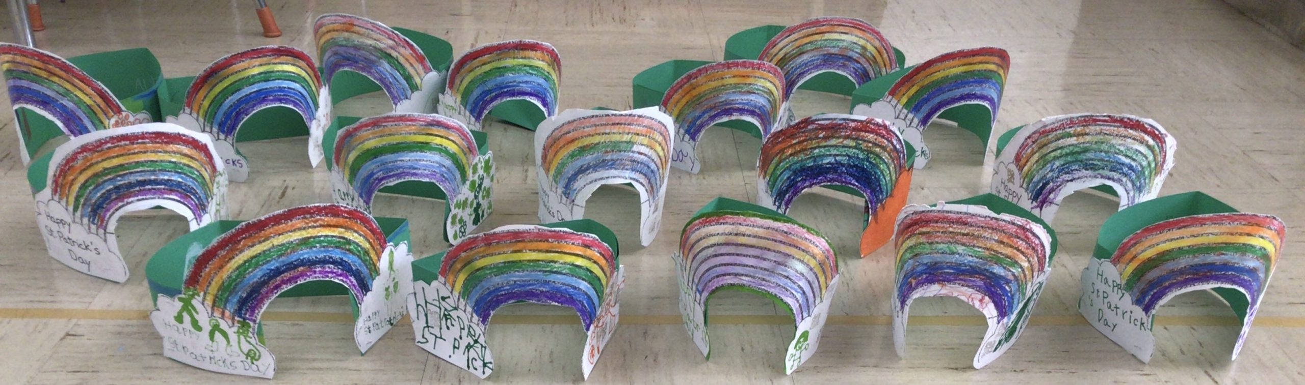 We love the seven colors of the rainbow. After we colored the lines of the rainbow, we put them together to make long wiggly lines.