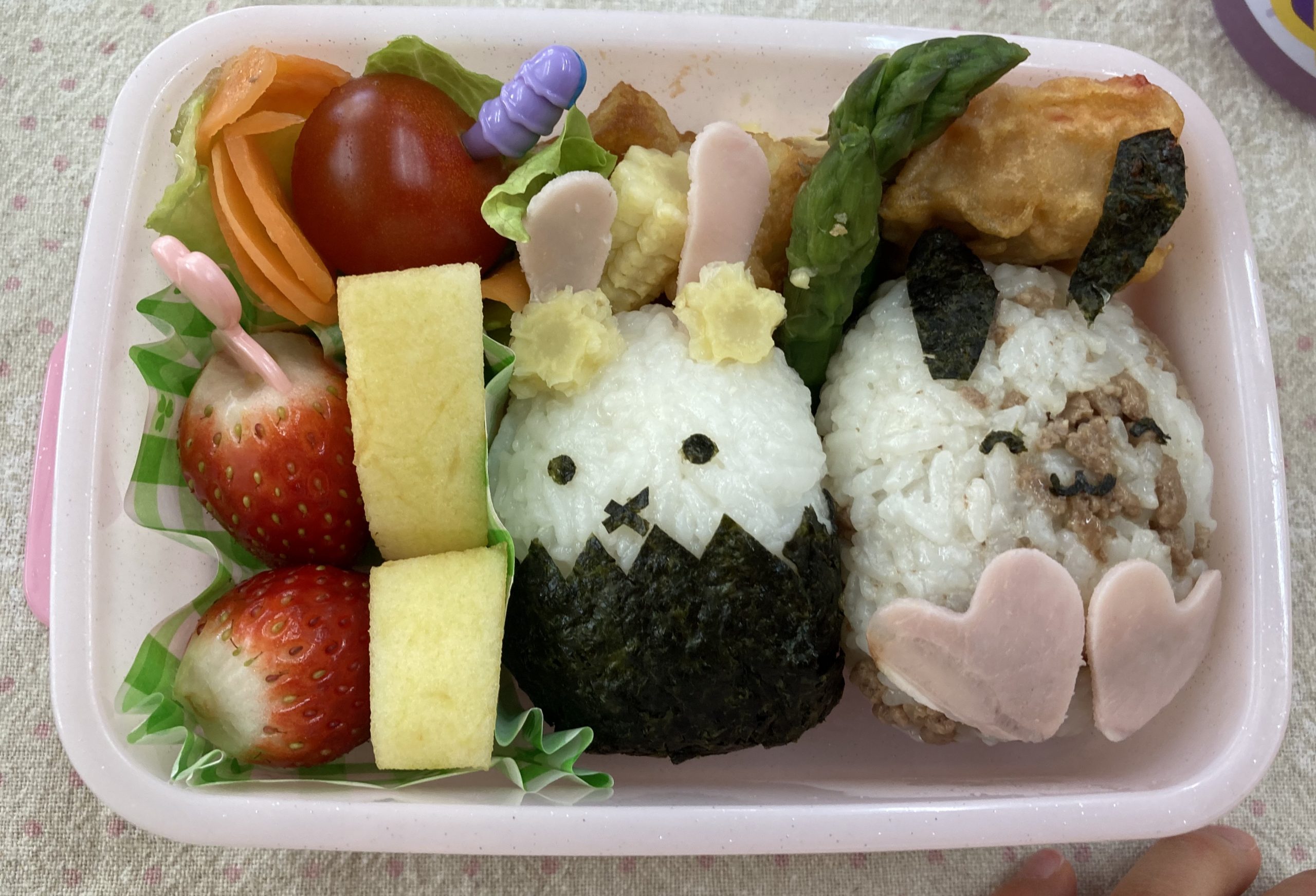 Are you interested in looking at April obento lunches by one of our moms? Can you identify who the characters are?