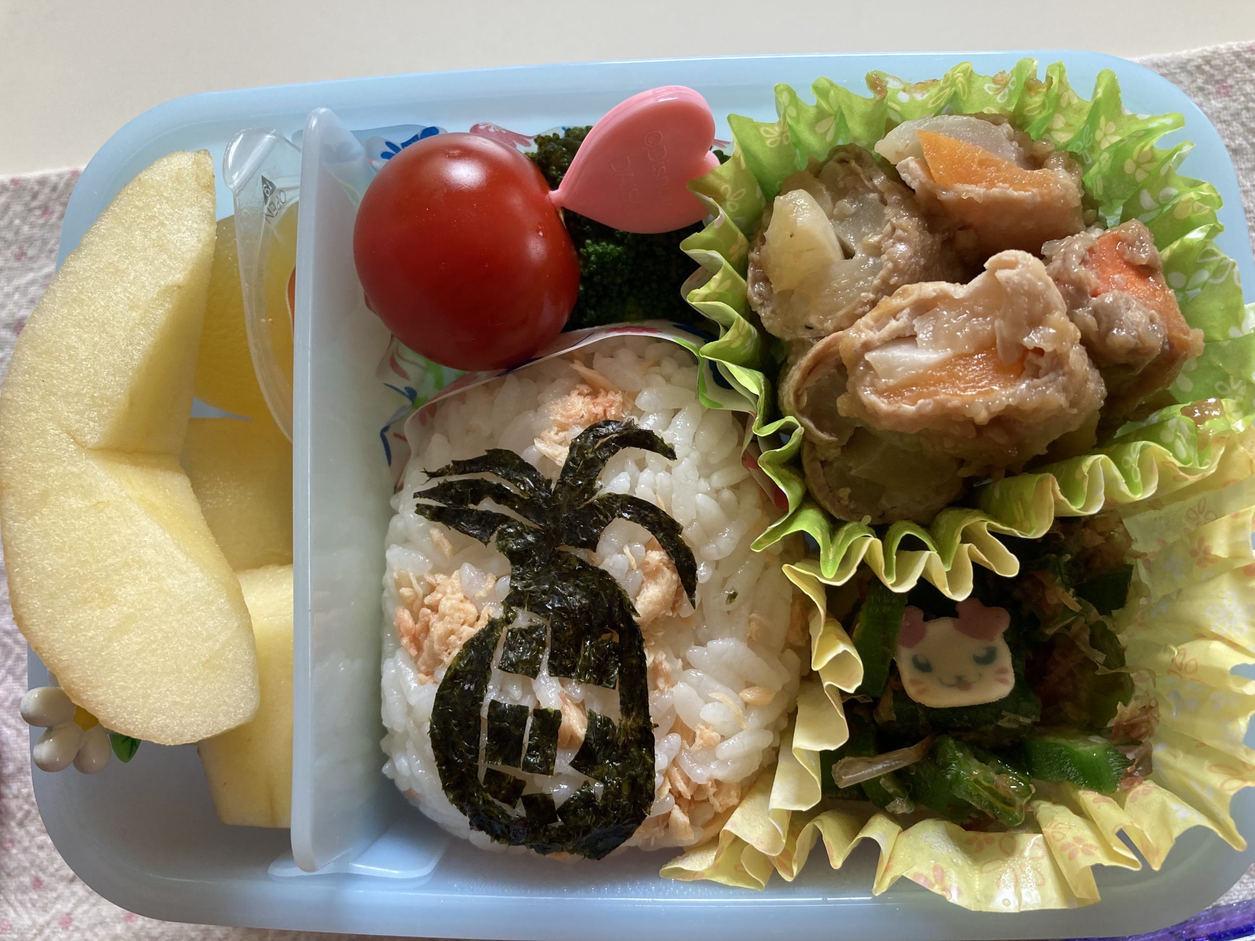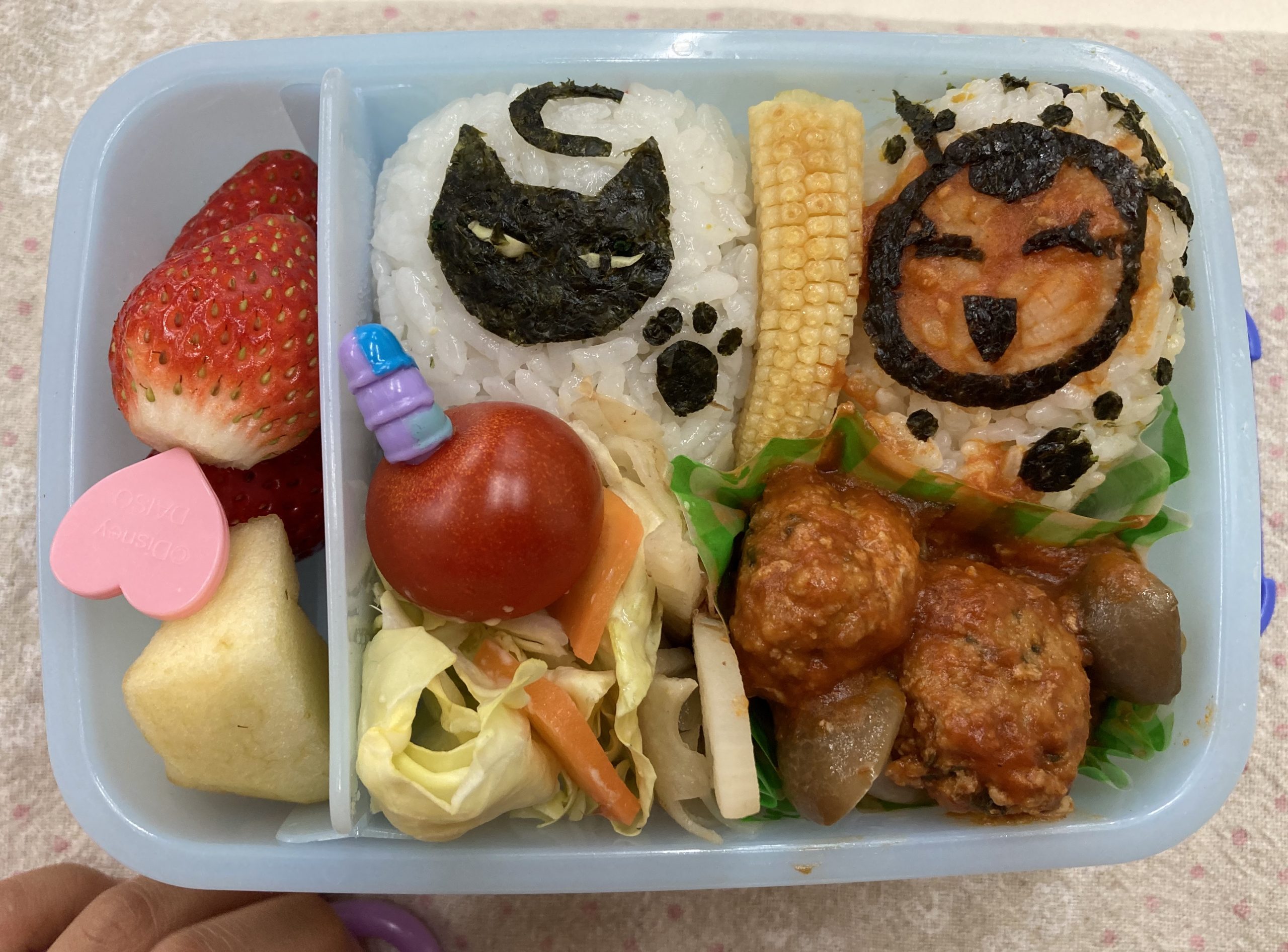 This was our last month to enjoy some creative obento lunches. A child actually ate these fun boxed lunches created by her mom below. And we all enjoyed looking at the details as shown in these pictures taken during lunchtimes.
