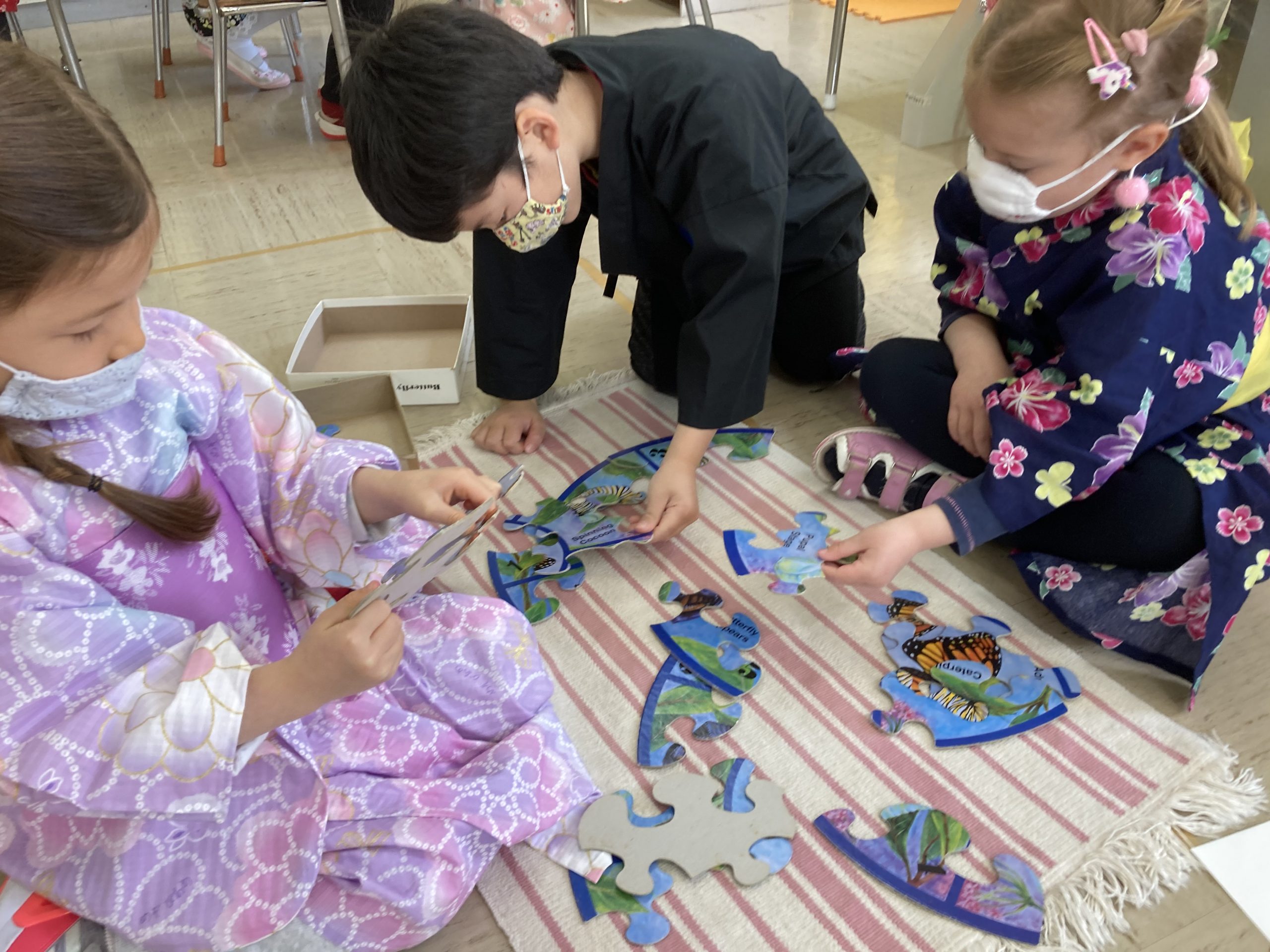 With Ms. Yuri joining our class and the Montessori team, we have started the new academic school year. Ms. Hoshi is now working in the school library, and we will have the chance to see her when we visit the library every week. We enjoyed welcoming in person both the old and the new children.