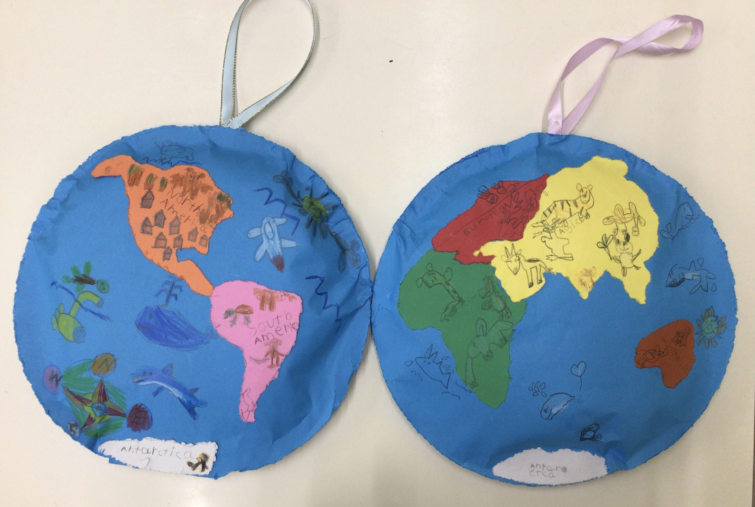 The continents of North America and South America: The children inquired into which classmates came from what country, and from which continent.