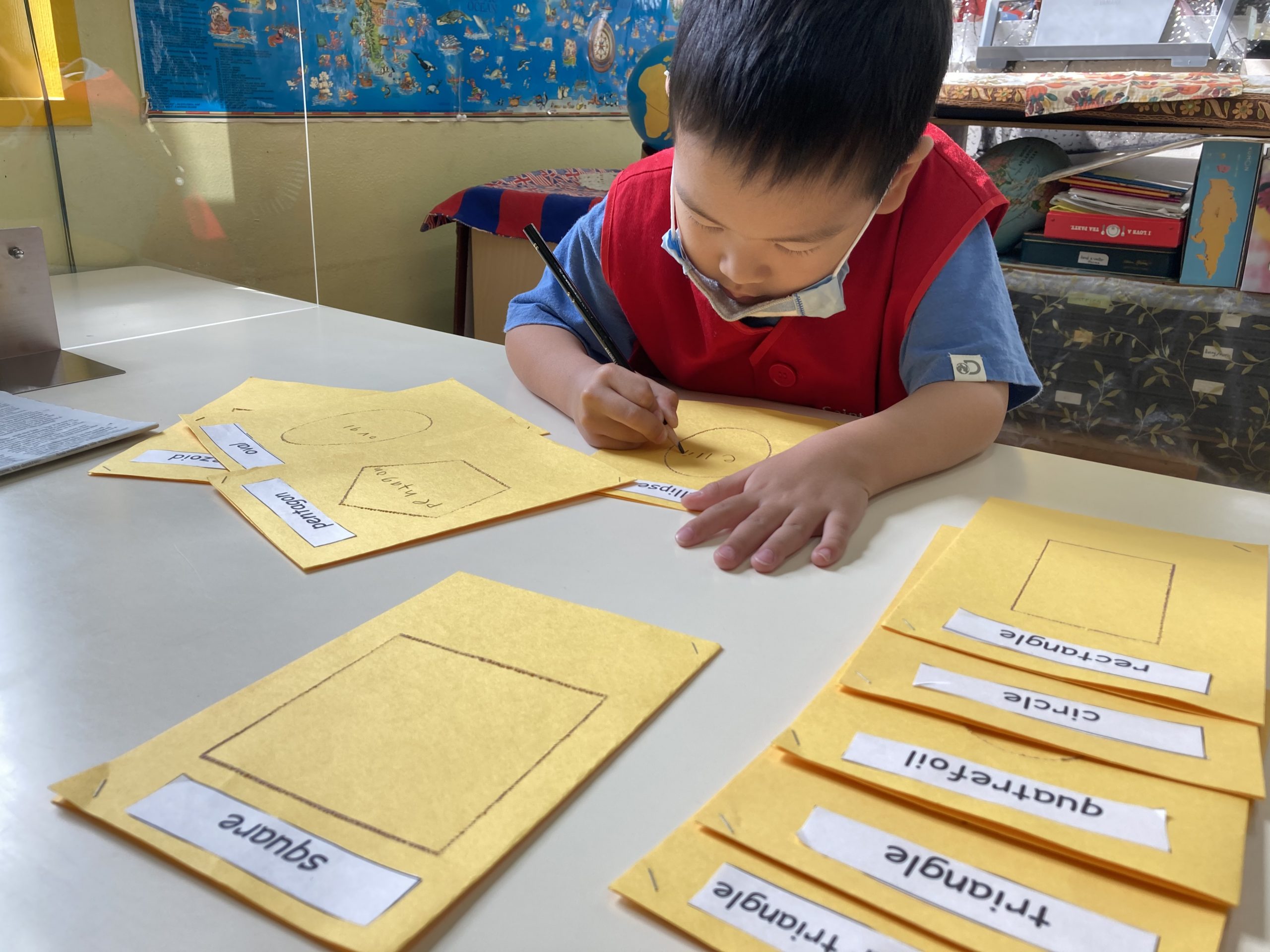 Because of the Covid-19 pandemic, we are following a “new normal” such as hand washing throughout the day, wearing a mask all day, observing physical distancing when lining up, partitions positioned on the tables, good ventilation along with air-conditioning with windows and doors partially opened, and sterilizing the school equipment and Montessori materials, especially after the children have gone home for the day.