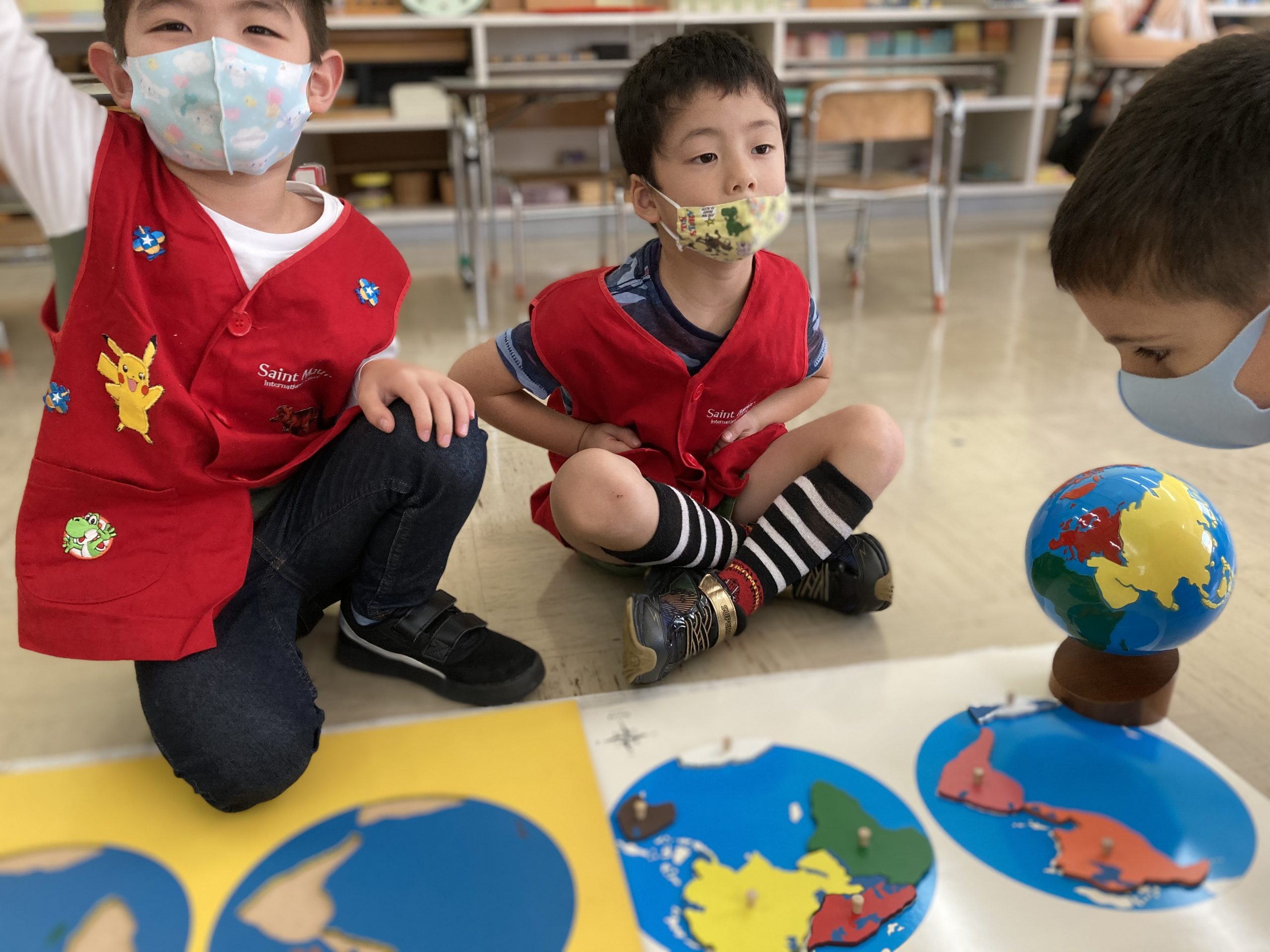 Our favorite lunchtime.In our map studies, we looked at our Continent globe and flat maps of the continents.We saw where we live, pinned and pasted the country of Japan and the regions including Kanto on our own paper maps.We also studied the seven continents as we pinned our world map.Some students pinned and pasted the map of Australia, which included the territories and states, and the country flag. The year 2020 was an unprecedented school year.  Let’s pray that the new year 2021 will be one of hope and peace in the world.  And, hopefully, we will all be able to travel around the world again.We miss the days together in our sunny play area on the roof.  Please have a nice Christmas vacation at home with your family.  See you soon in the classroom in January. Till then, stay safe and healthy.