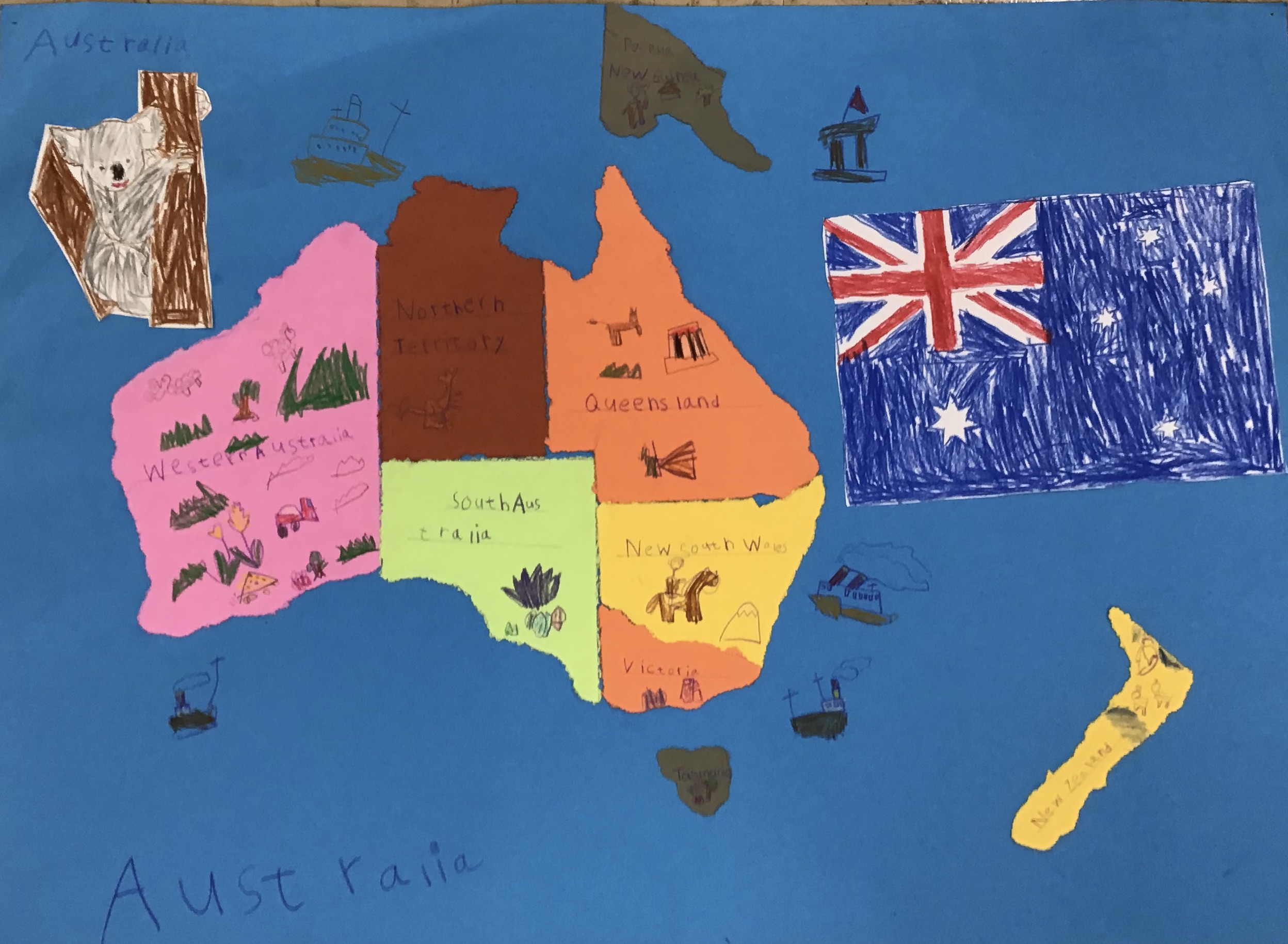 Some students pinned and pasted the map of Australia, which included the territories and states, and the country flag.