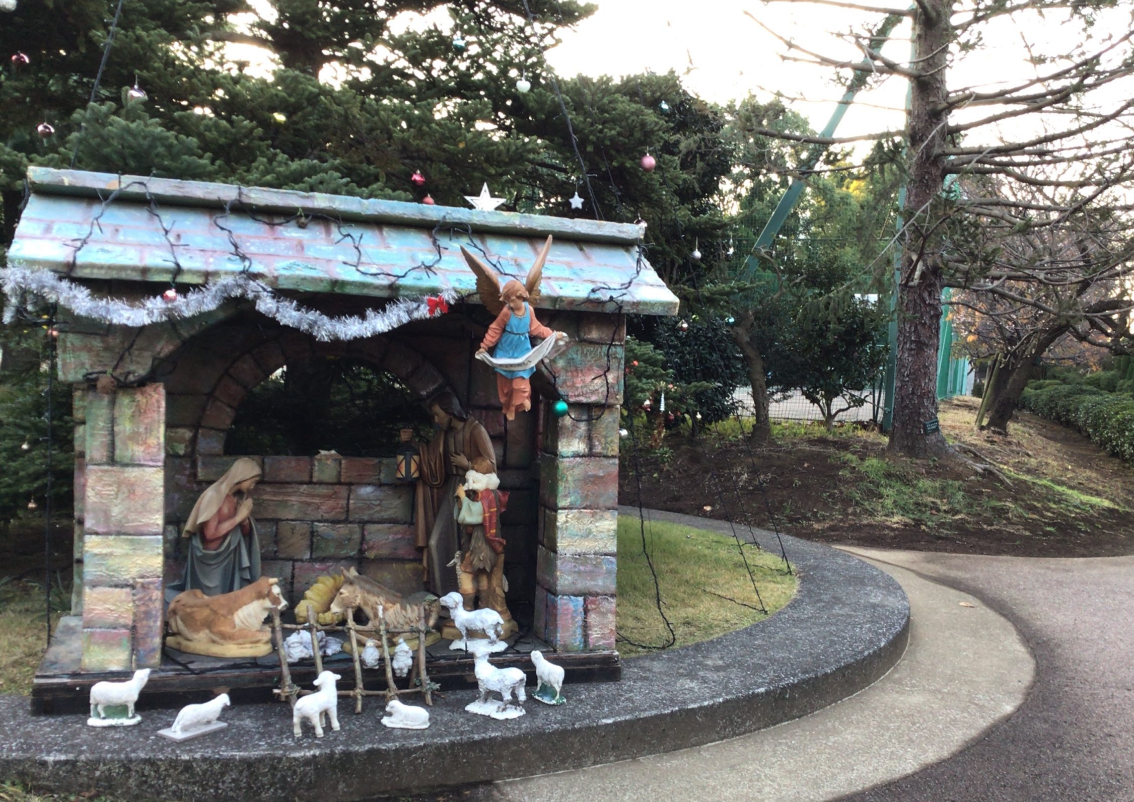 If you walk along the Futaba pathway to Saint Maur, you will see a manger scene (during the day and lit at night).
