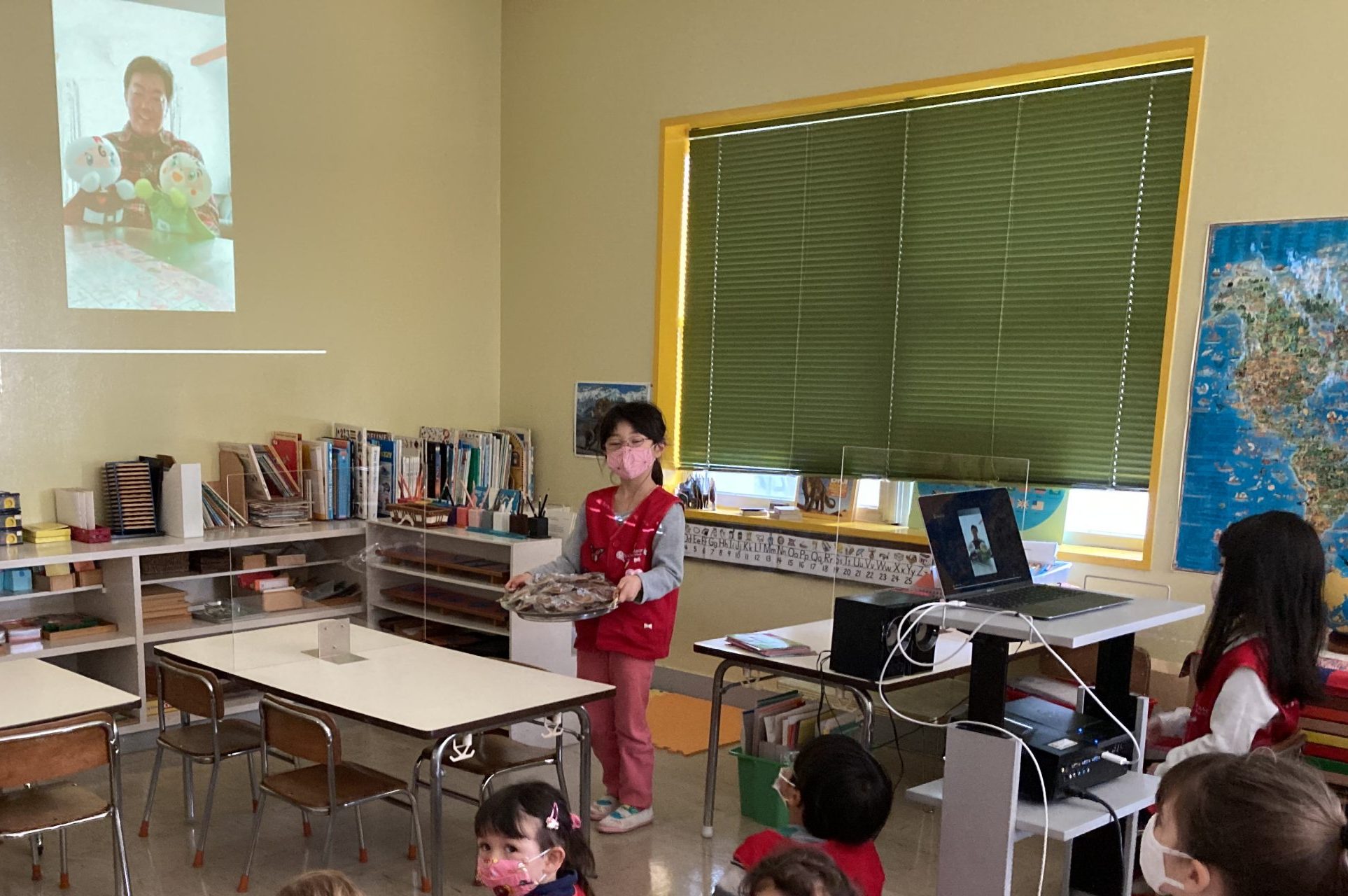 Japanese Culture Week, March 22nd-26th: The five weekdays were dedicated to learning more about Japan, the country we all reside in. In following the strict rules for containment of Covid-19, our parents volunteered to make presentations on Japanese-related cultural activities by making original short videos that the children could watch in the classroom, offering them a new way of learning. We are grateful to the moms and dads, grandma, and middle school and high school siblings who participated.
