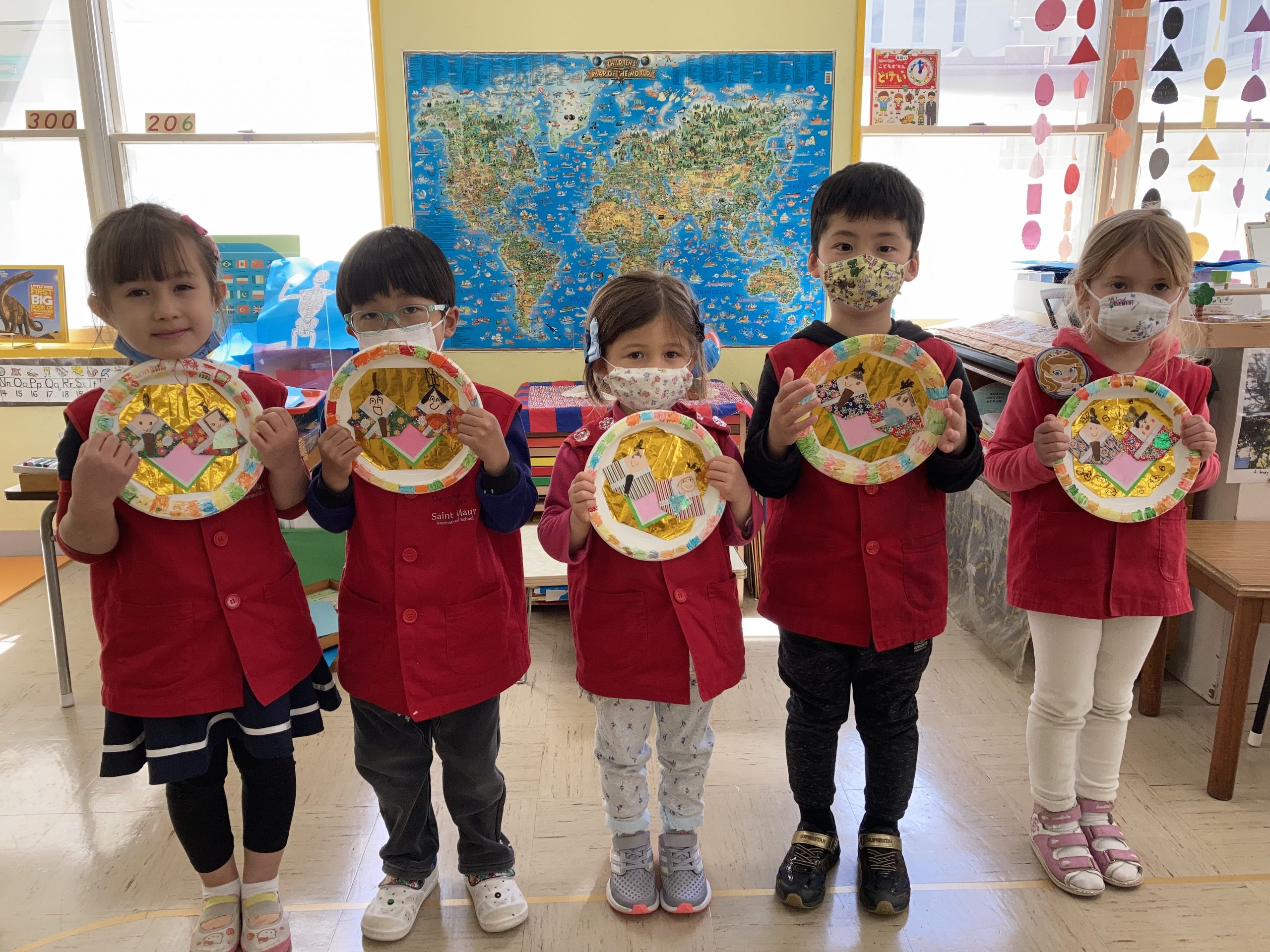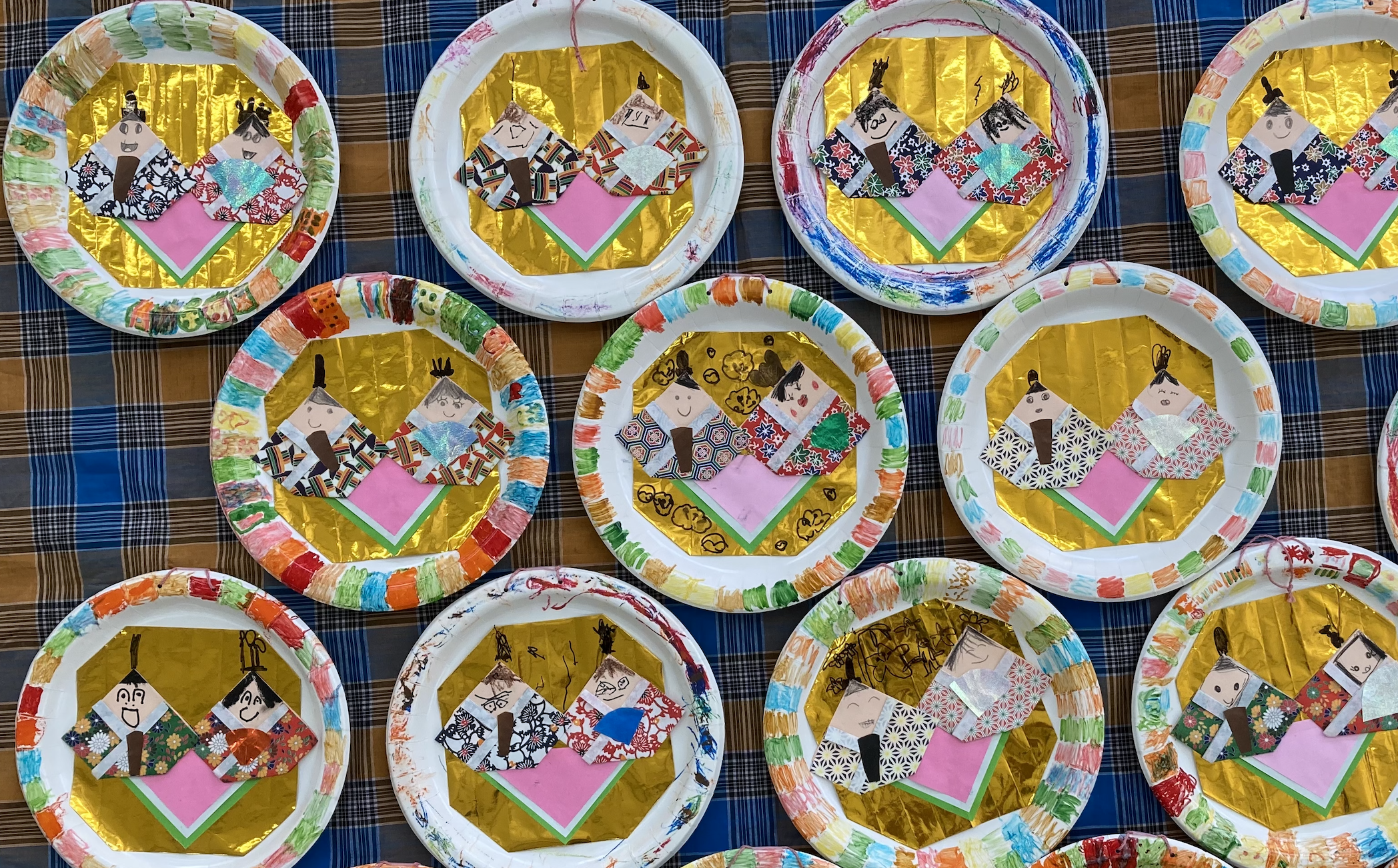 Happy Girl’s Day, “Hinamatsuri,” March 3rd: Each child made a craft honoring the emperor and empress, using paper plates and origami paper.