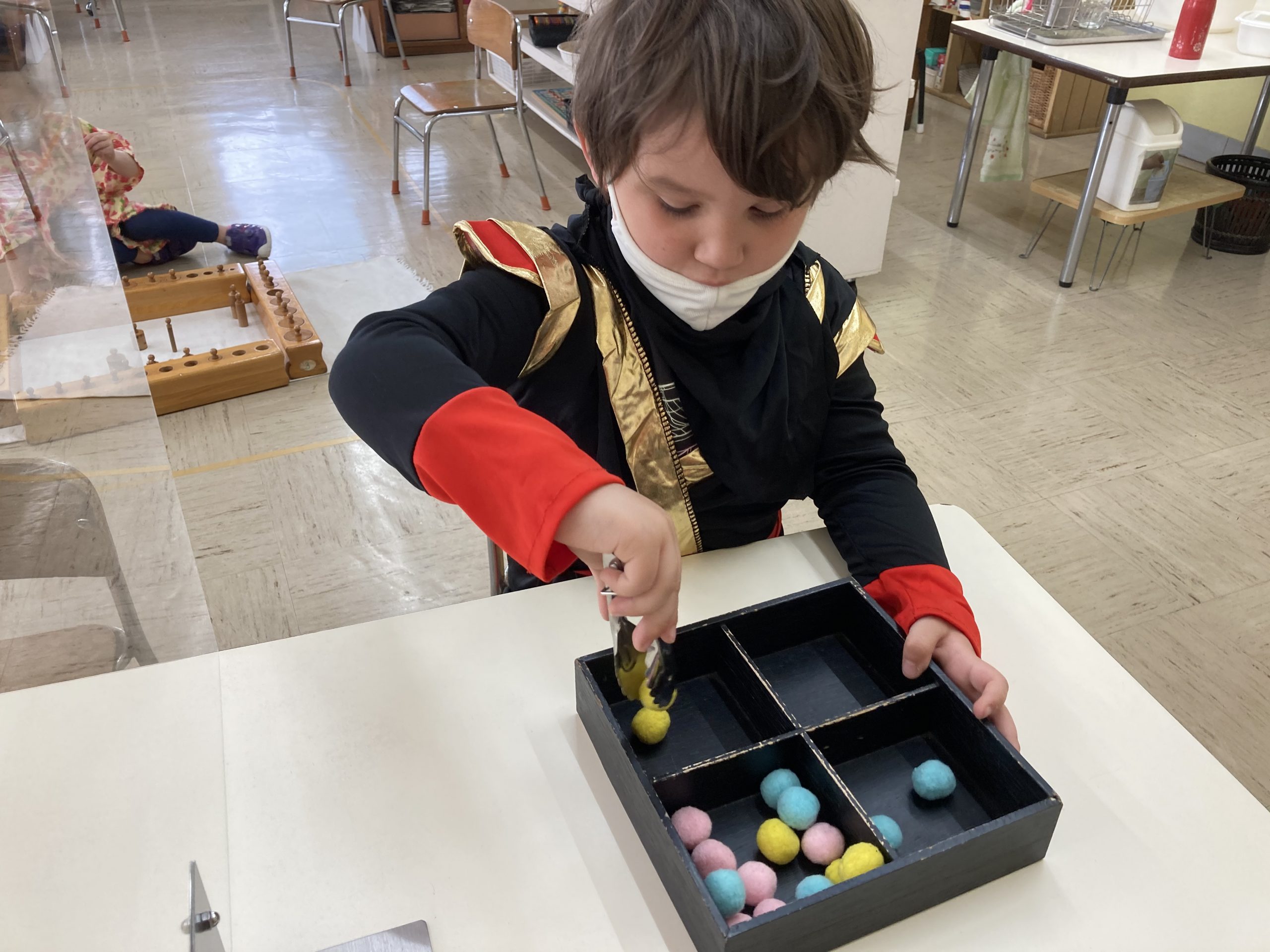 More classroom activities: From butterfly puzzle making, matching shapes, fitting in Cylinder Blocks, to using tongs to transfer objects, and the Binomial Cube.