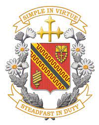 At the entrance of the new building is a Cross made from pieces of the original wooden floor of the old gymnasium. To the right is a tile of Margaret flowers, which are found elsewhere on campus in various buildings. Can you find them? The Margarets are on our school badge.
