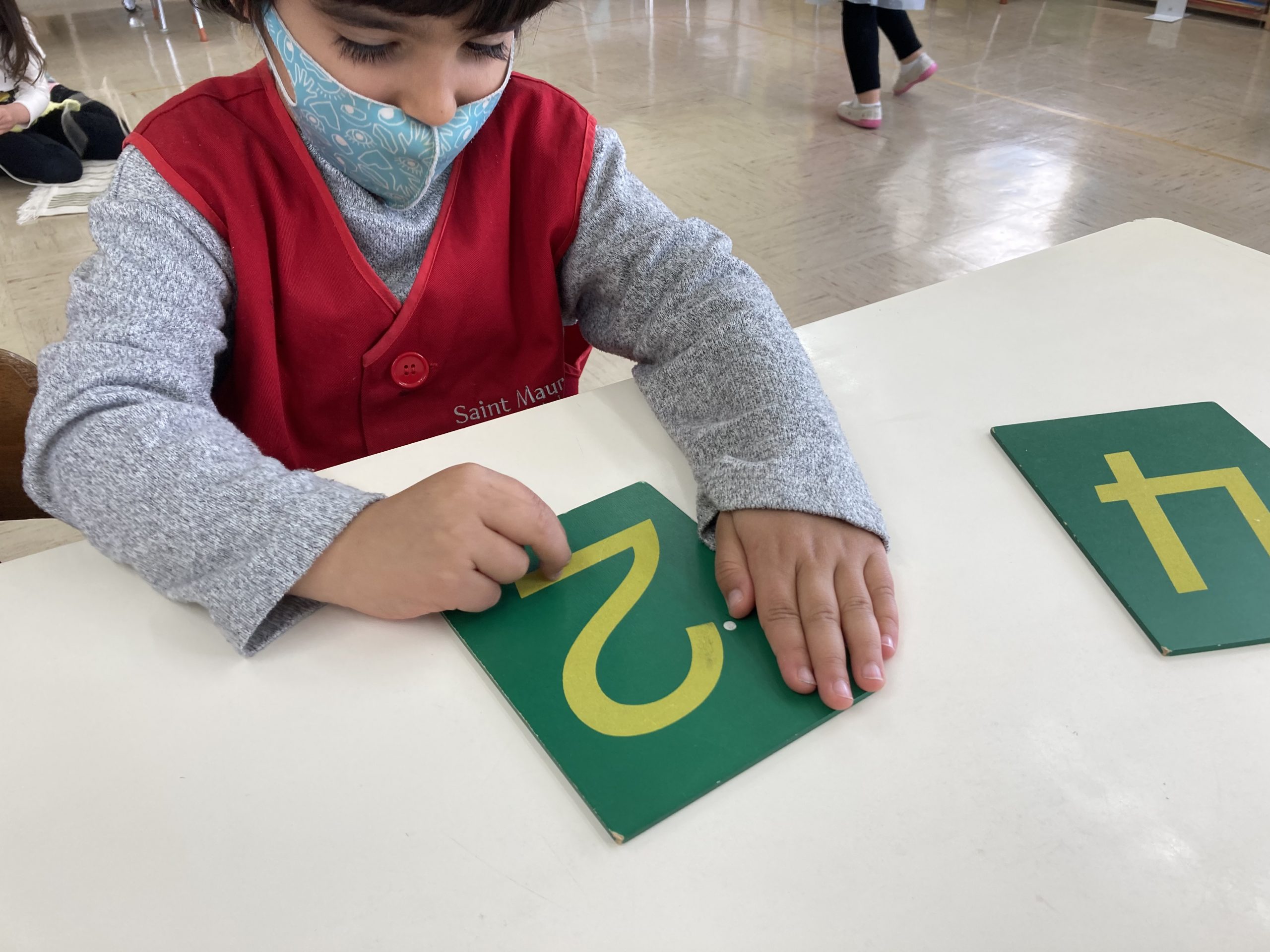 Sandpaper Numbers: Tracing the correct formation of numerals with two fingers. Putting the numbers in order Birthday celebrations: Sharing her photos from each year, from 0 ~ 4 years old.