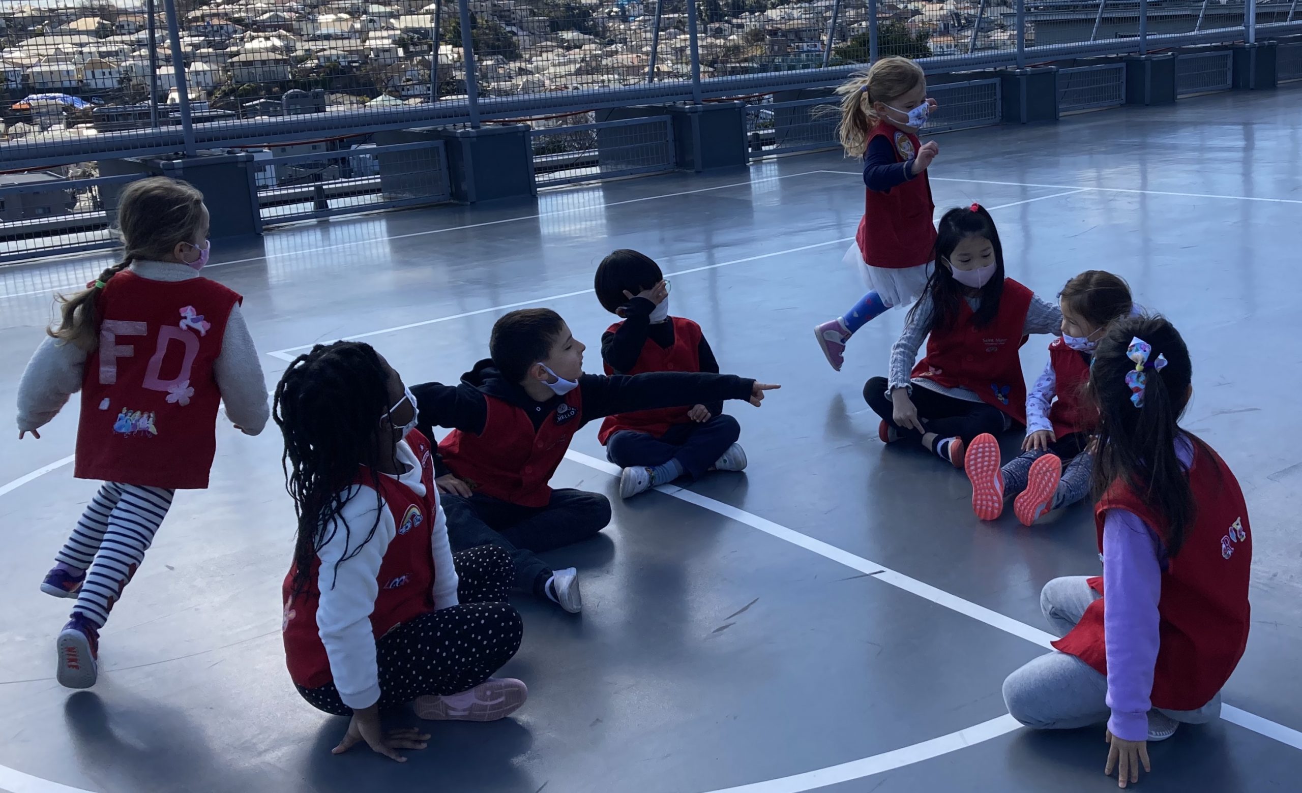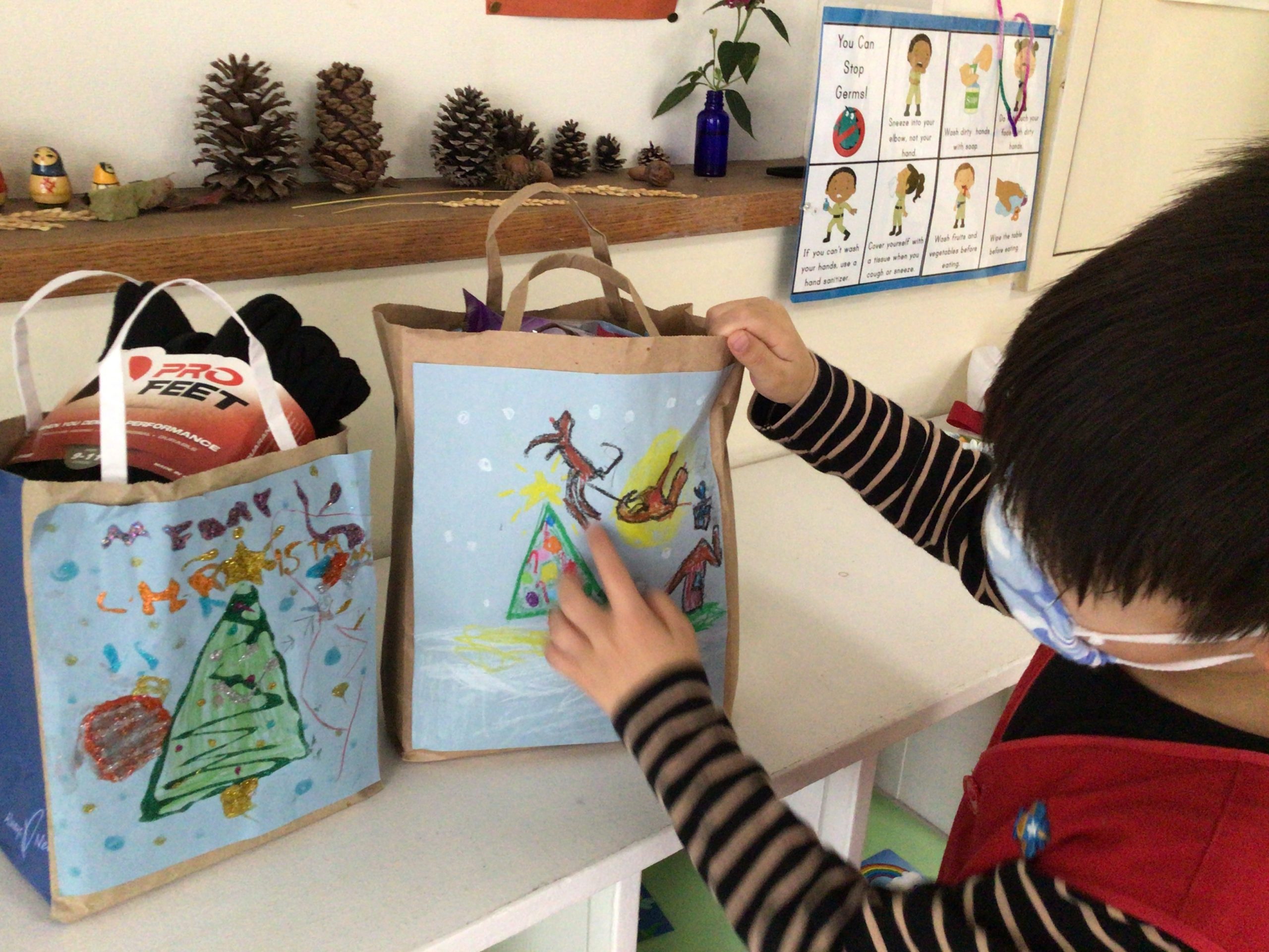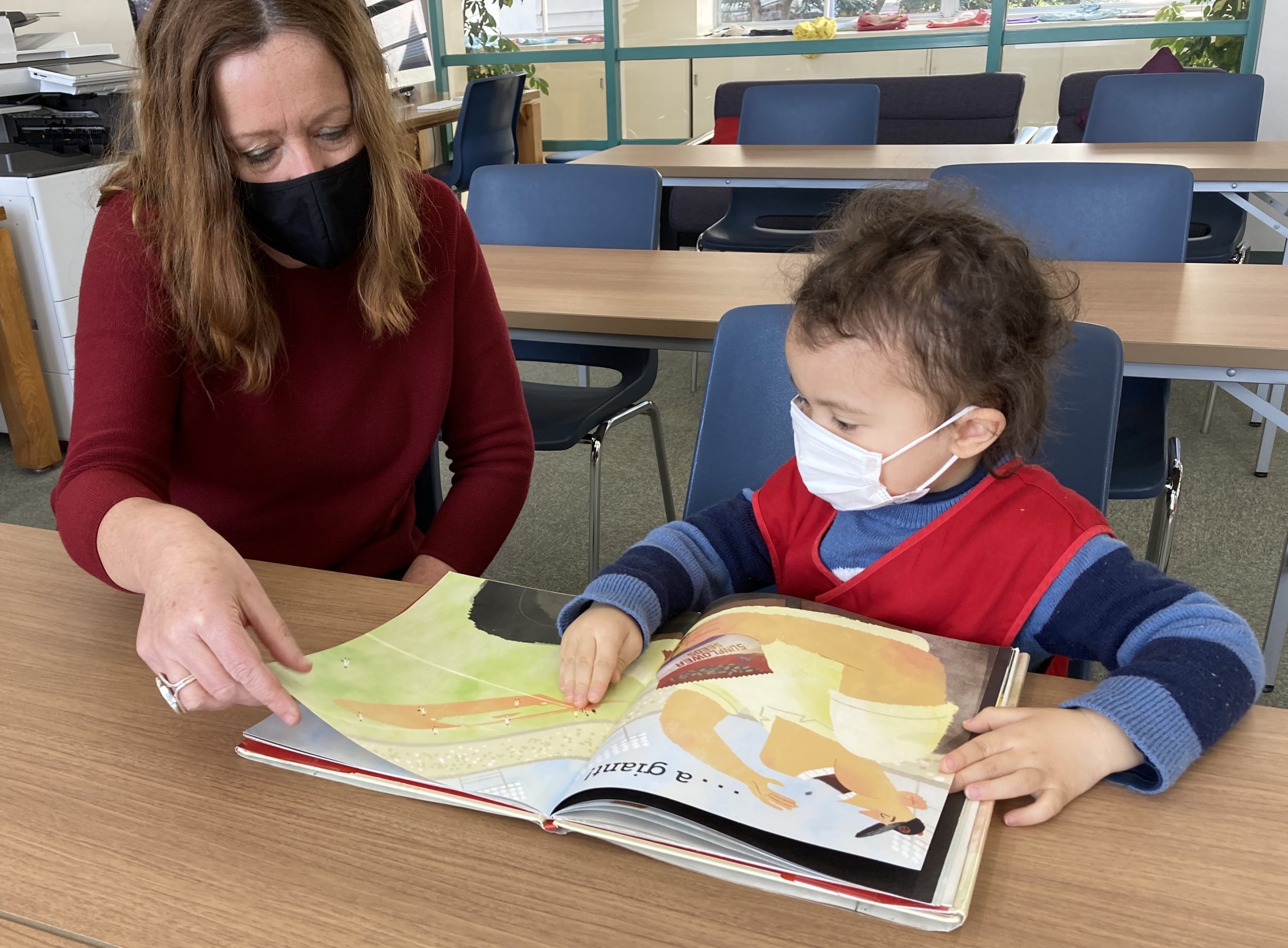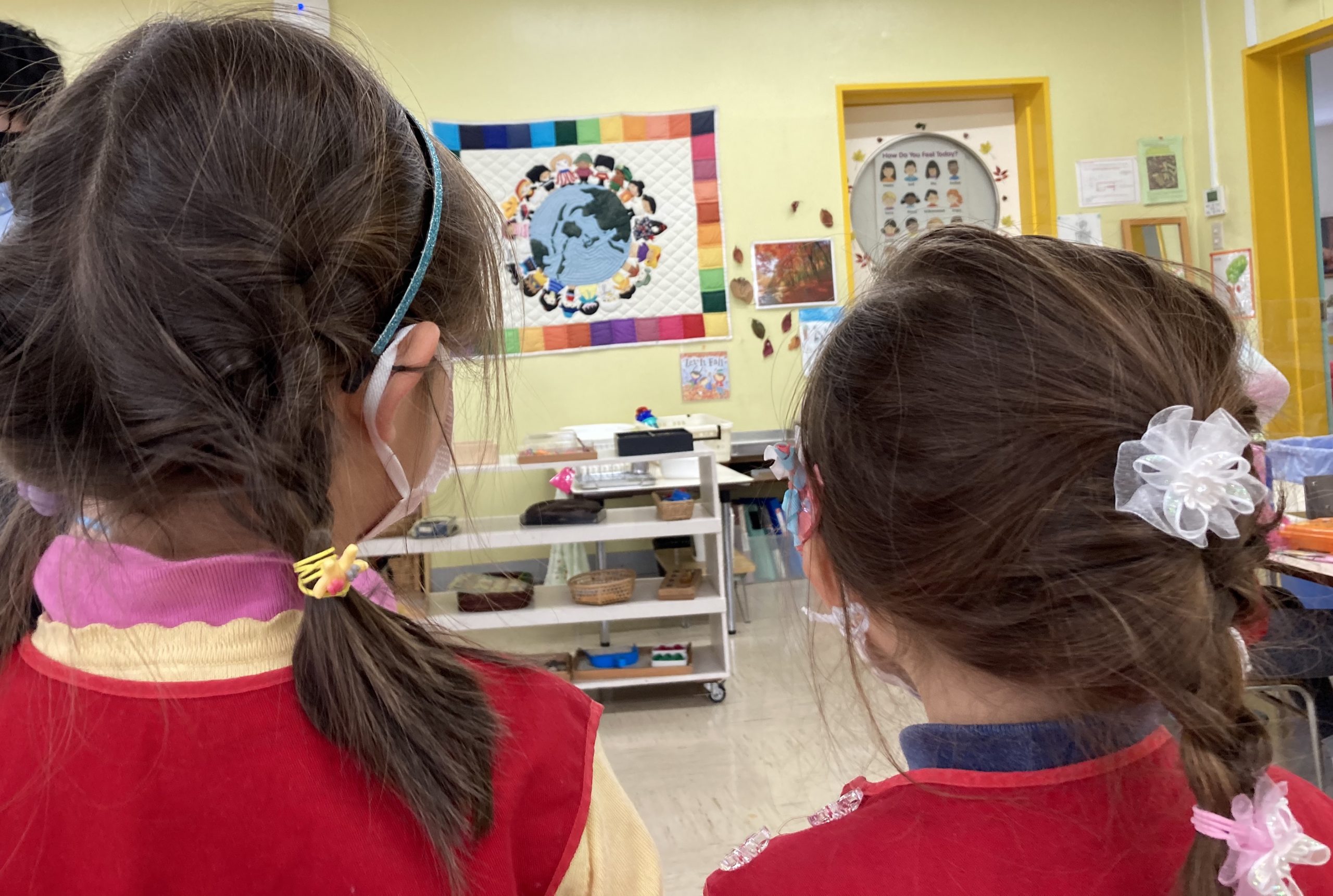 When the children were eating lunch, they knew that they had to eat in silence since they took off their masks. As a result, the children developed their own sign language to communicate with each other through the transparent hard-plastic table dividers. How clever and fun!