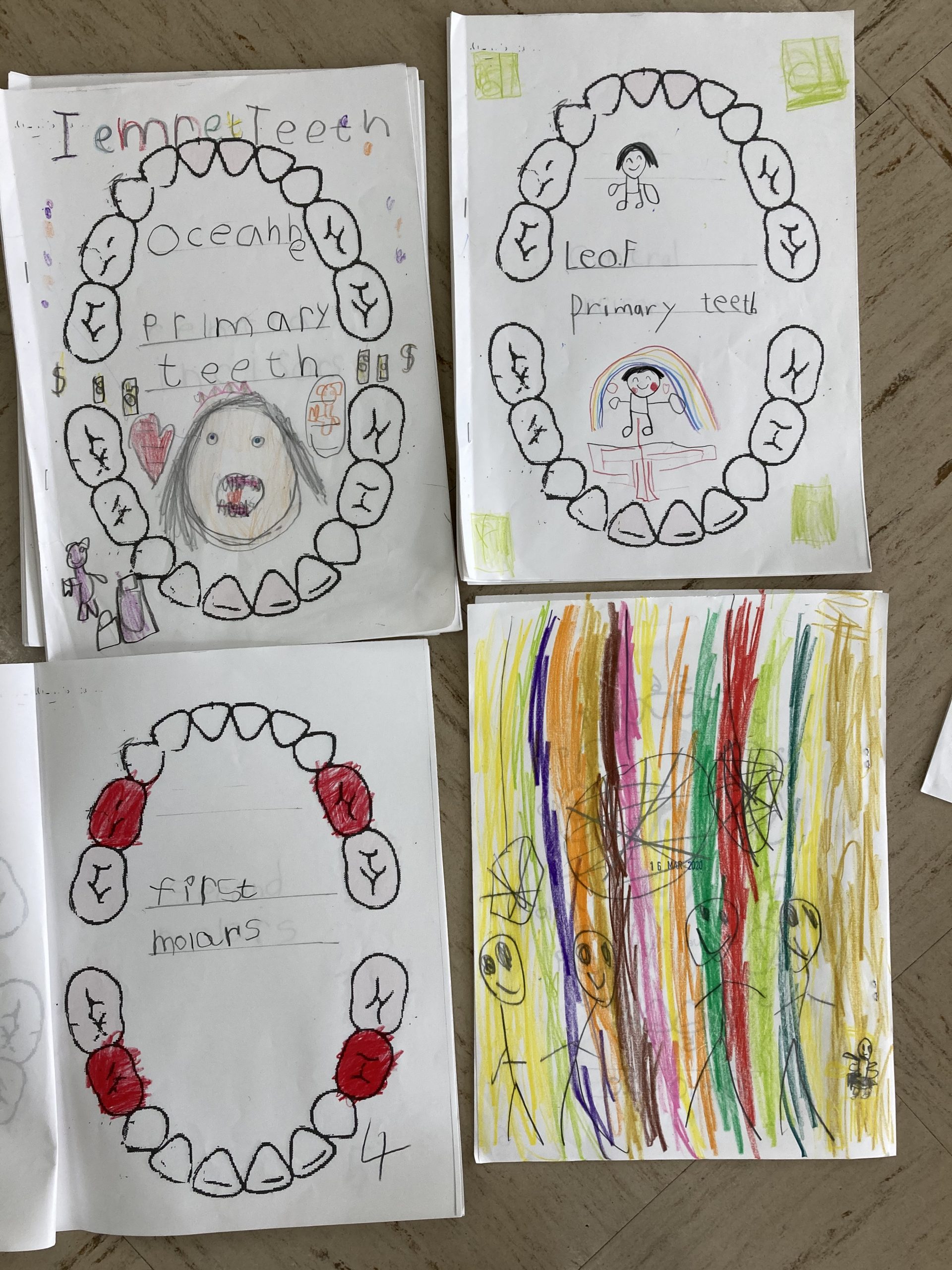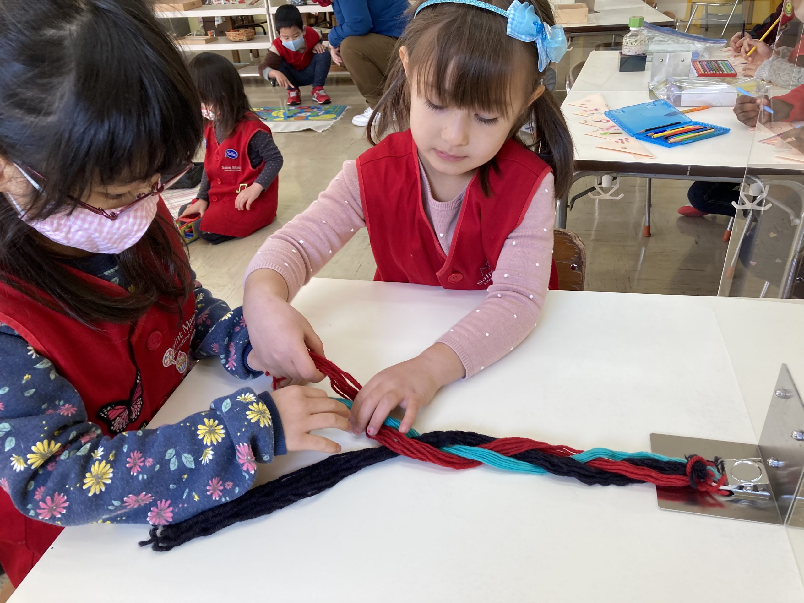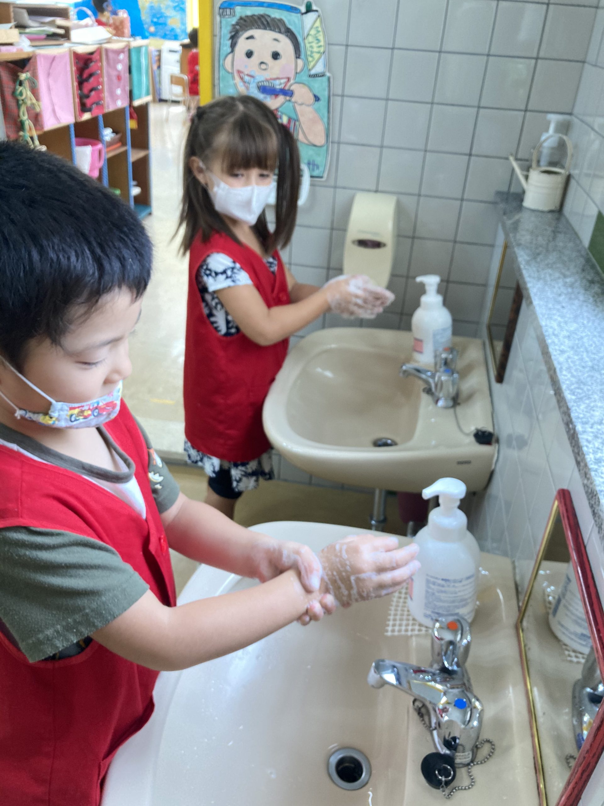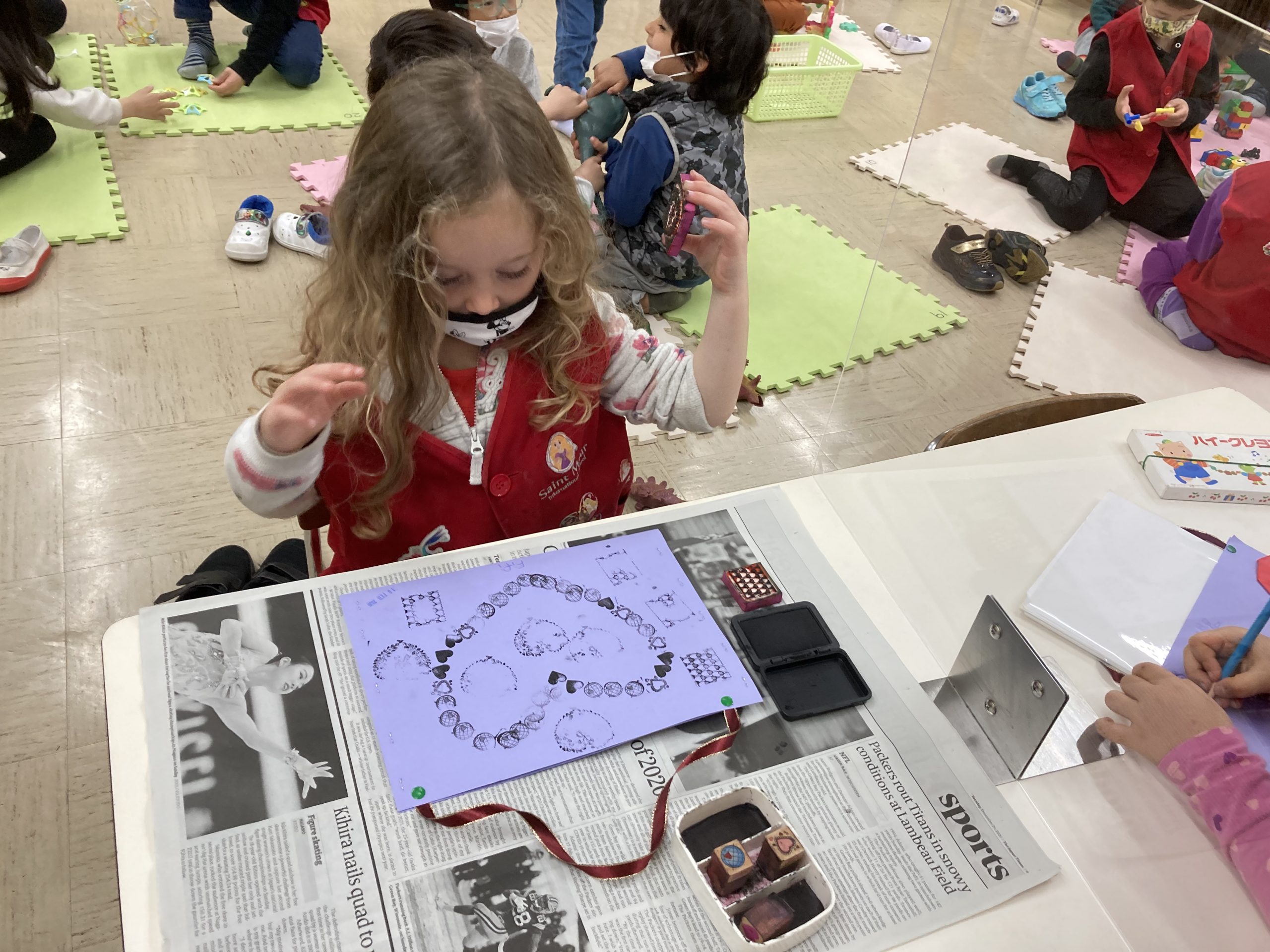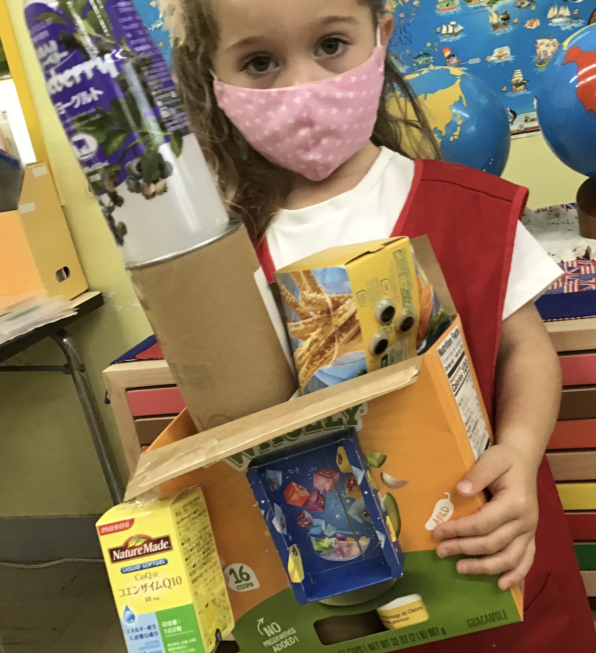 When the children were eating lunch, they knew that they had to eat in silence since they took off their masks. As a result, the children developed their own sign language to communicate with each other through the transparent hard-plastic table dividers. How clever and fun!