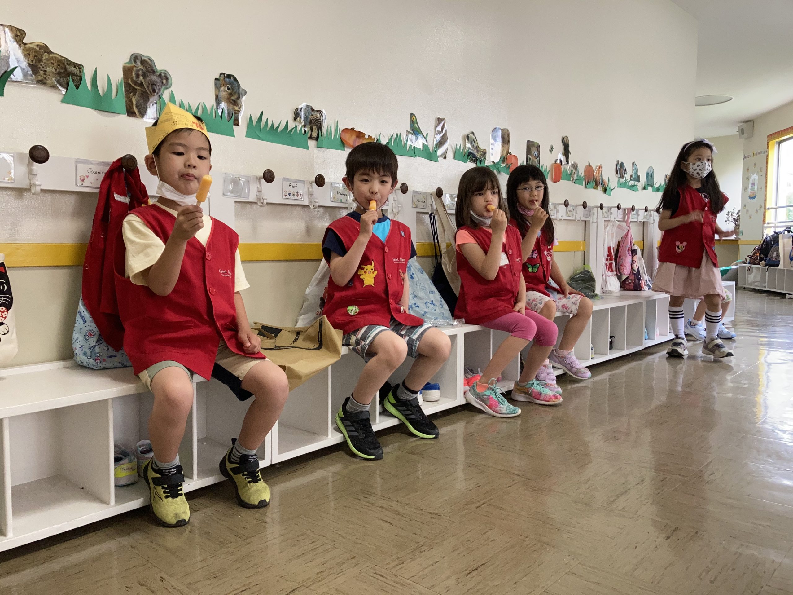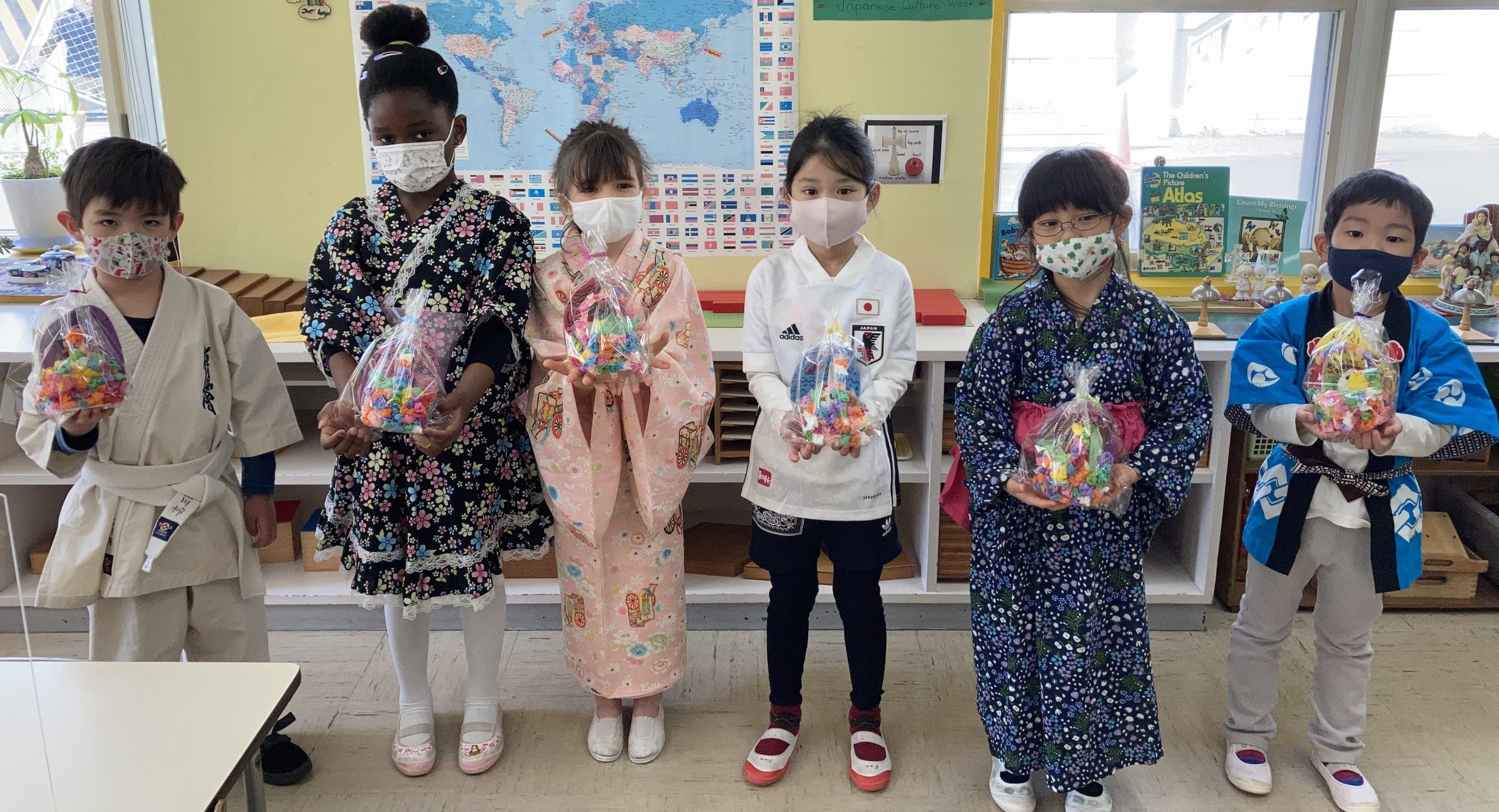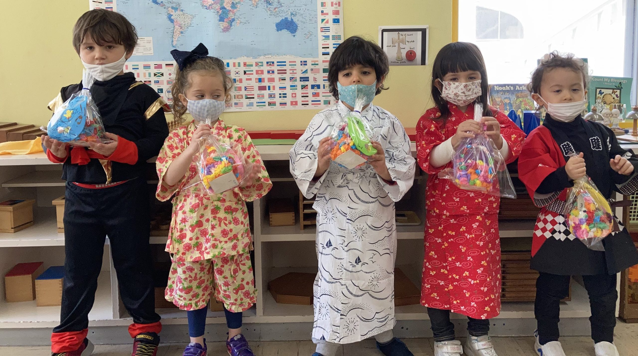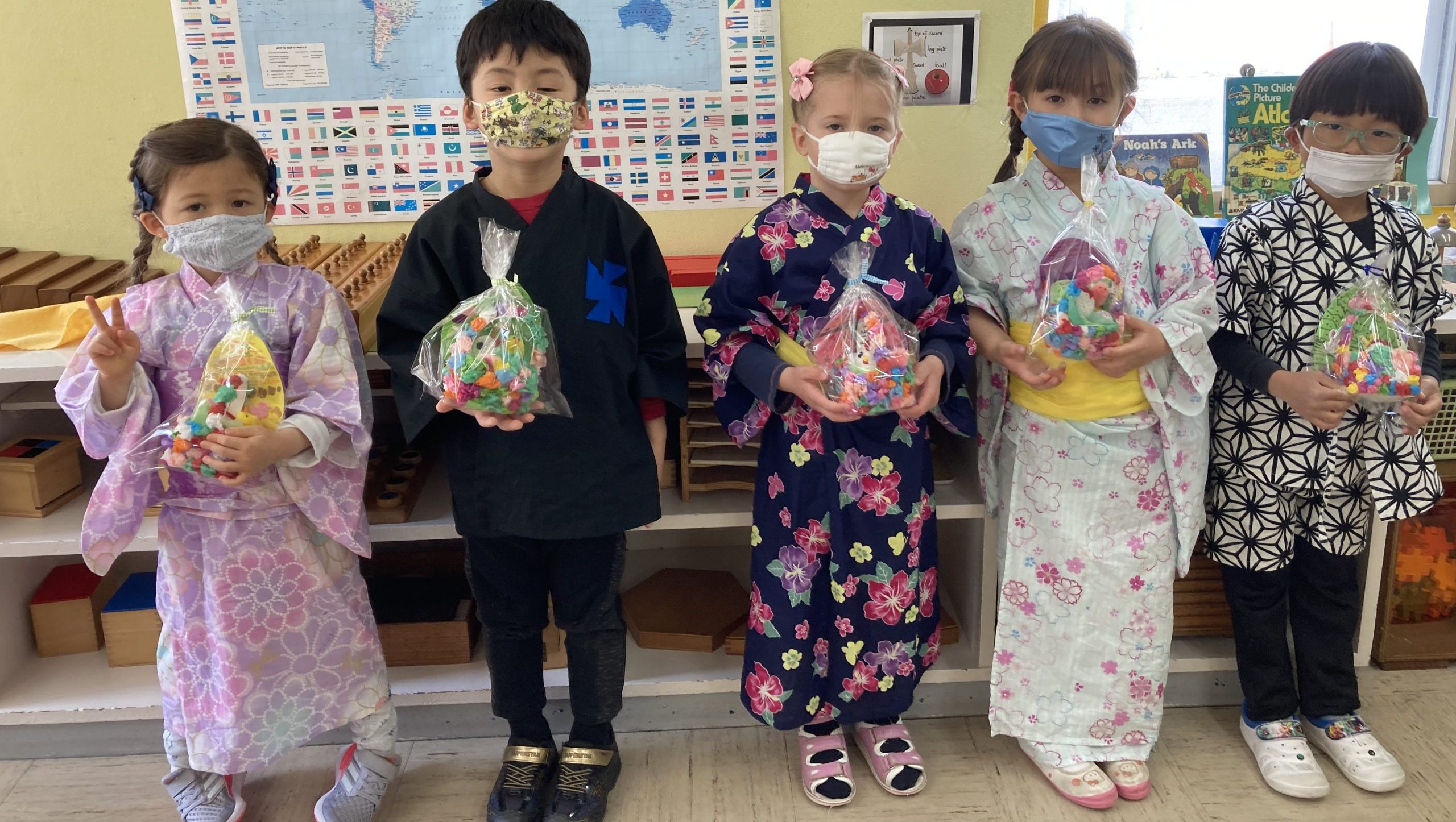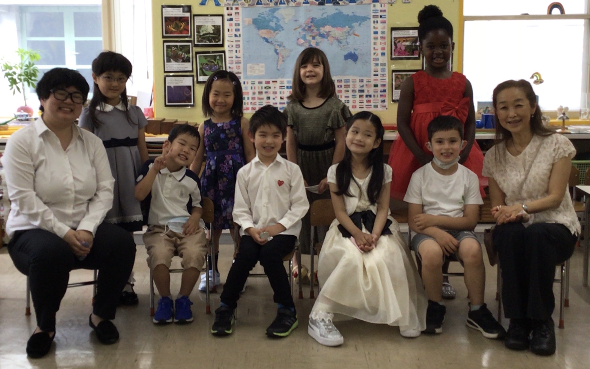 And here we are, the Montessori graduates of 2021 from Ms. Mimi and Ms. Momo’s class. And in 12 years, they will be graduating from High School! We took our last group photo with big smiles! (a quick five seconds of masks-off to show off our happy faces)