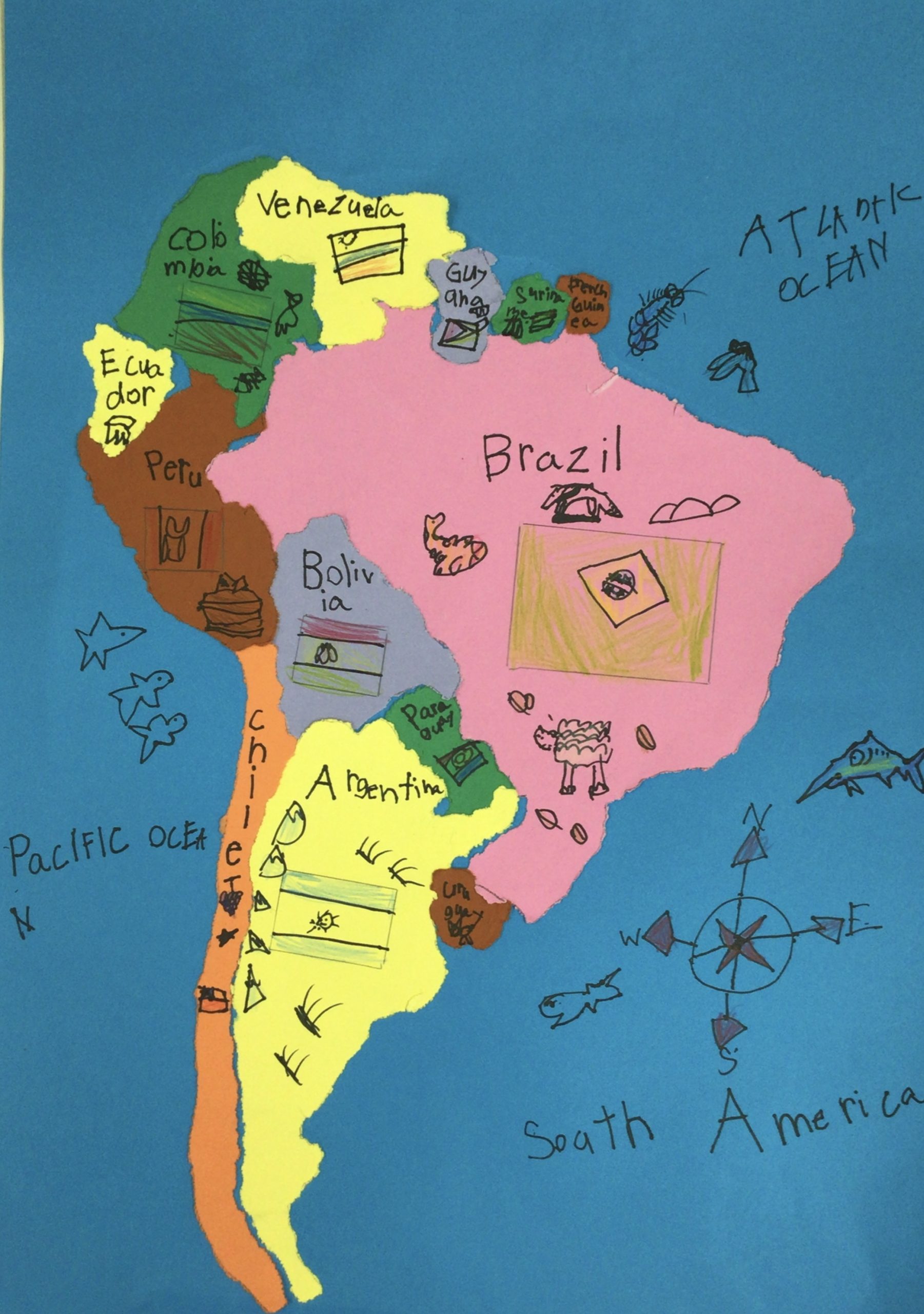 The continents of North America and South America: The children inquired into which classmates came from what country, and from which continent.