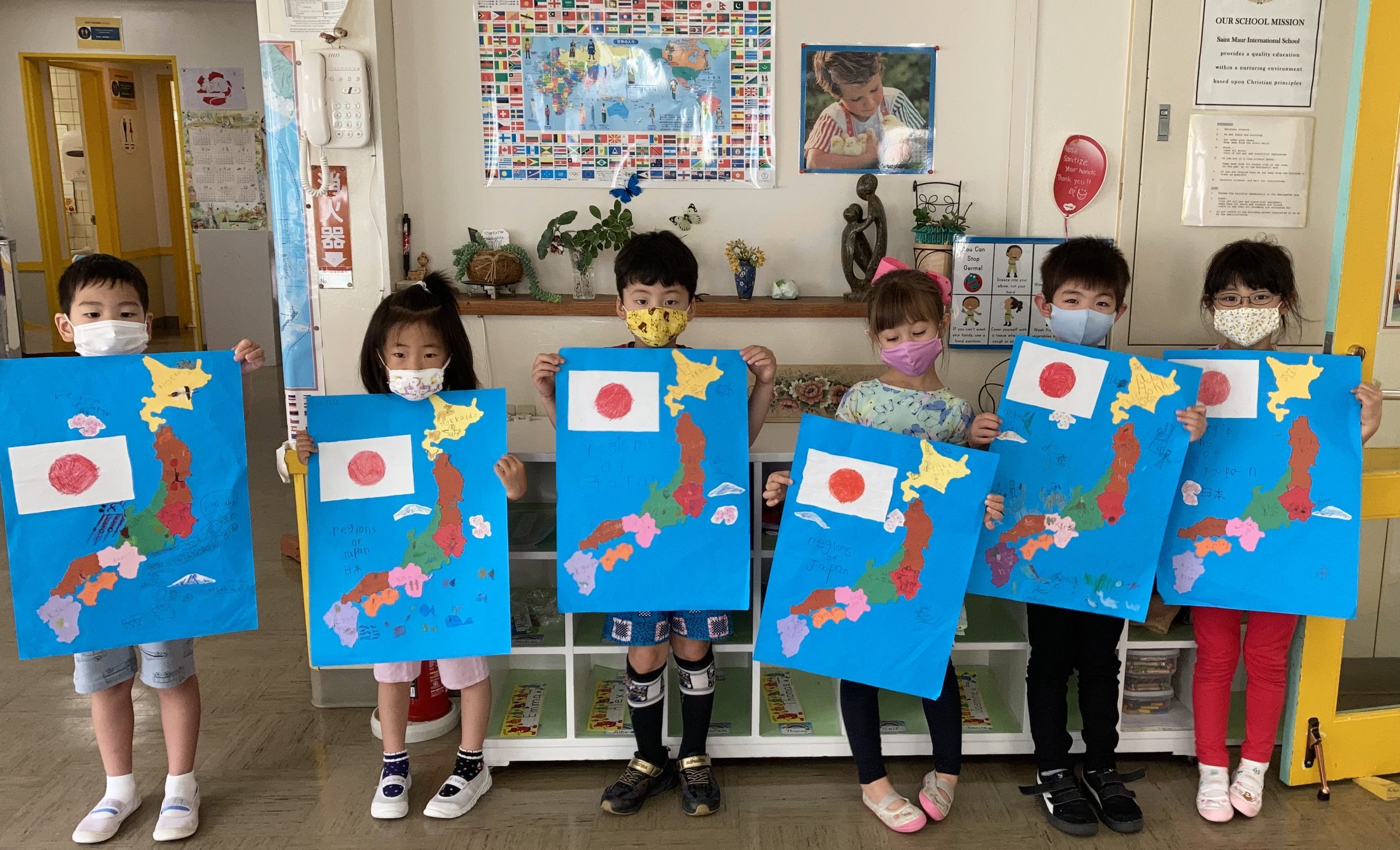 This child is making a map of Japan, and learning the names of the nation’s regions.