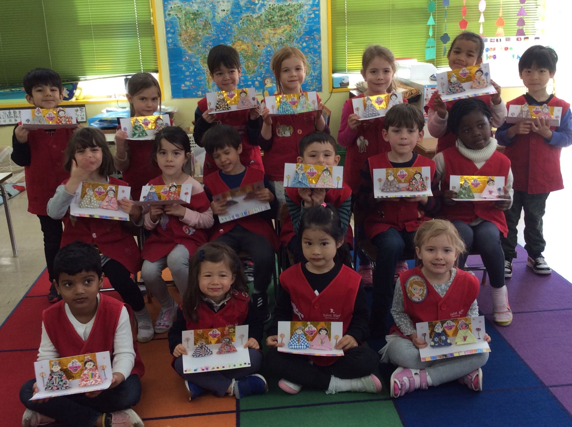 We had children joining us throughout the year, and we also had children who had to move and leave us during the year. The above photo of the 23 children, Ms. Mimi (far left, middle row) and Ms. Hoshi (right, back row) was taken at the end of the school year.  Of the 23 children, do you know the different nationalities we had this year?We had children from…Australia, Canada, China, France, Germany, Hong Kong, Hungary, India, Japan, Pakistan, Romania, Russia, Singapore, South Korea, Spain, and United States.